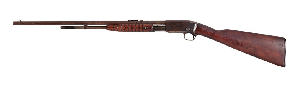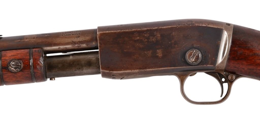 SN 558257. Chambered in .22 short/long/long rifle, 22" barrel, dark bore. Metal is even gray patina finish. Wood is solid with handling marks and nicks. Working action. Modern.