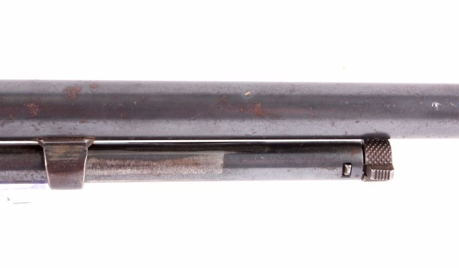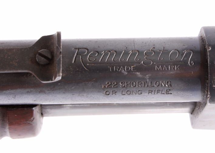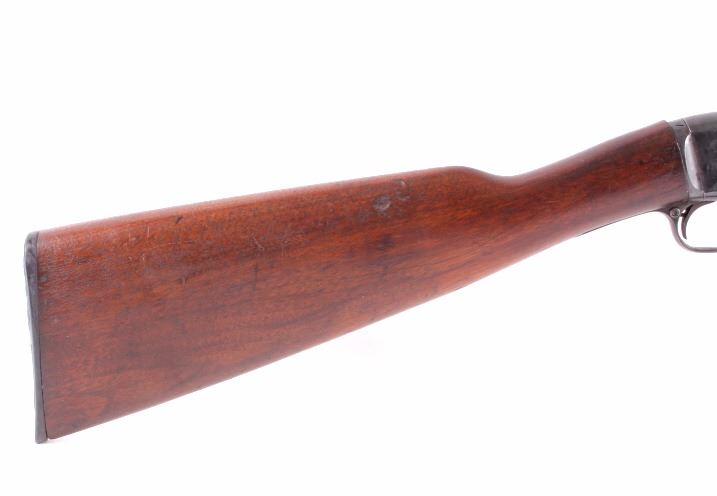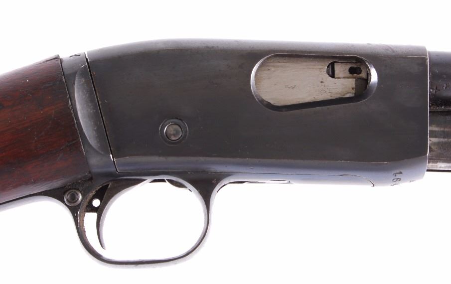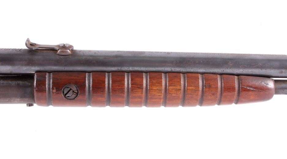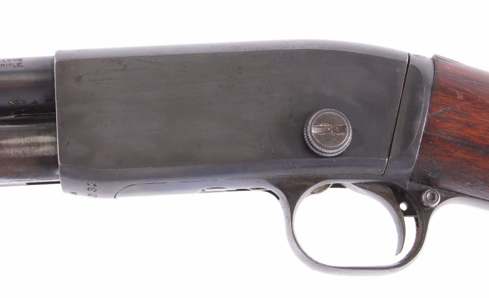This is a Remington Arms Co. Model 12-A (12A) slide pump action rifle in 22 short, long, long rifle caliber. The takedown rifle shows a blue finish with walnut hardwood stock and shows a 22 inch round barrel. The Model 12-A shows a serial number of 464232 and was manufactured in 1923. The .22 gallery gun is truly a wonderful early example. Curio & Relic Long Gun FFL Transfer or NICS Background required.