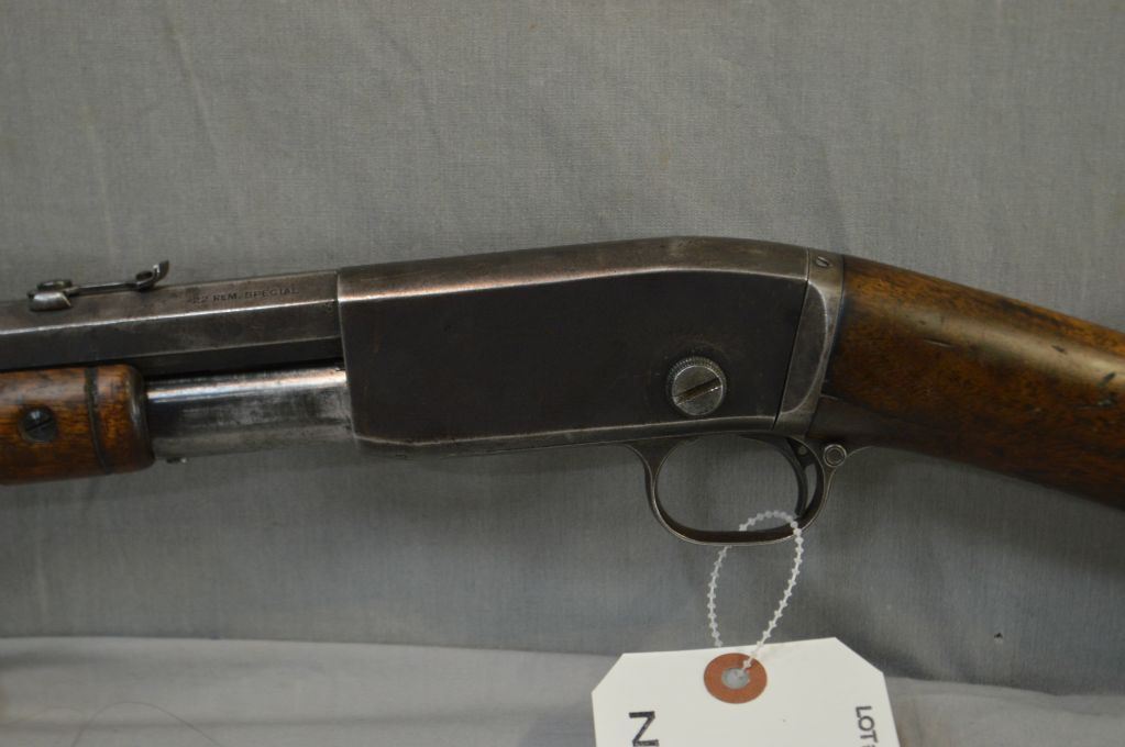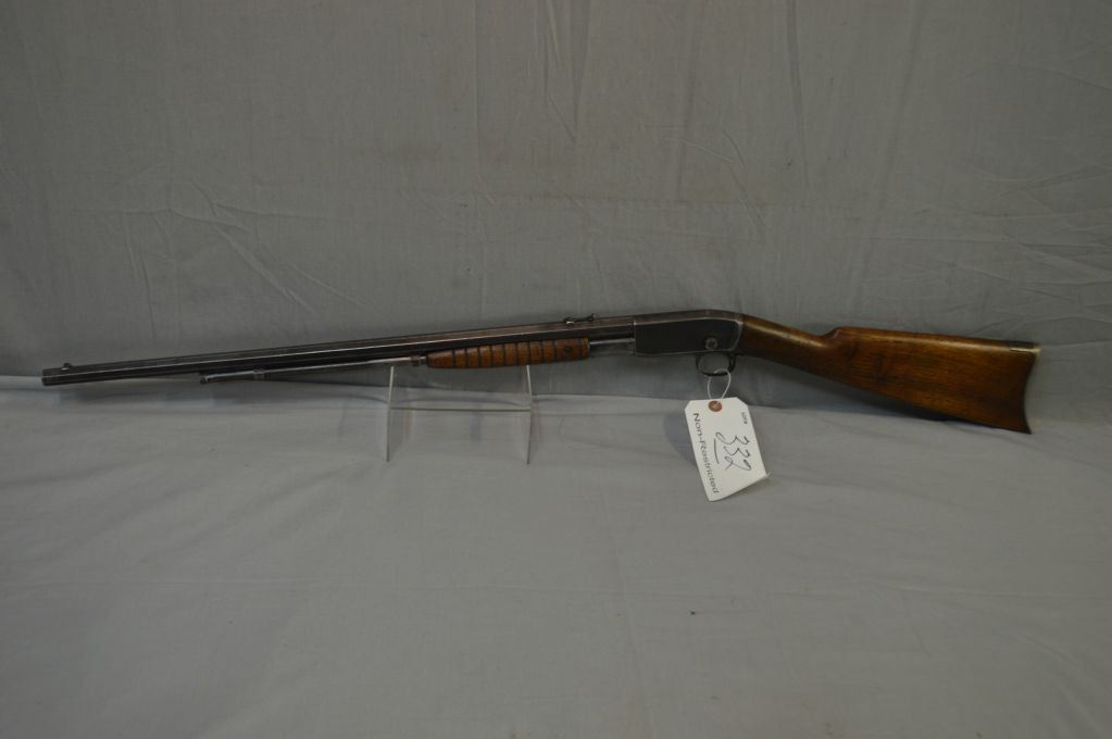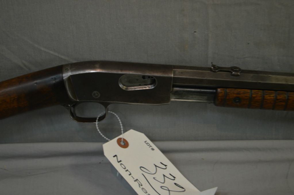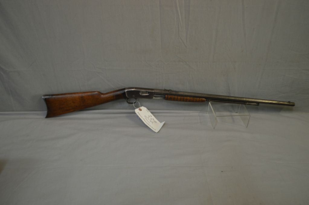 Remington Model 12C Marked .22 Rem Special Cal But Converted to .22 Long Cal ? Tube Fed Pump Action Rifle w/ 24" octagon bbl [ fading blue finish, turning brown w/ barrel sights, barrel is sleeved, and previous owner says it fires .22 LR , but doesn't eject, believes to be in .22 Long Cal only , good forend, butt stock cracked behind receiver, crescent butt plate ] Ser # 223693