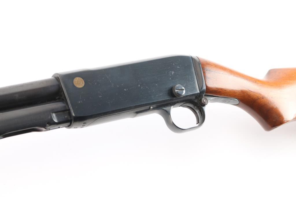 FAIR: Some major parts replaced; minor replacement parts may be required; metal rusted, may be lightly pitted all over, vigorously cleaned or re-blued; rounded edges of metal and wood; principal lettering, numerals and design on metal partly obliterated; wood scratched, bruised, cracked or repaired where broken; in fair working order or can be easily repaired and placed in working order.