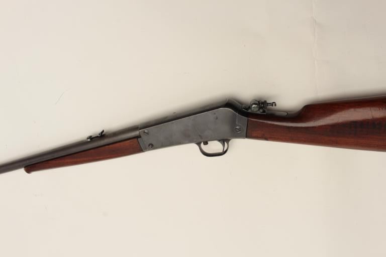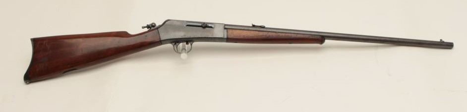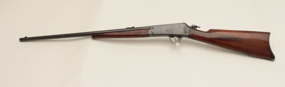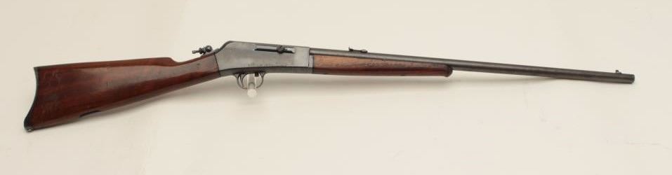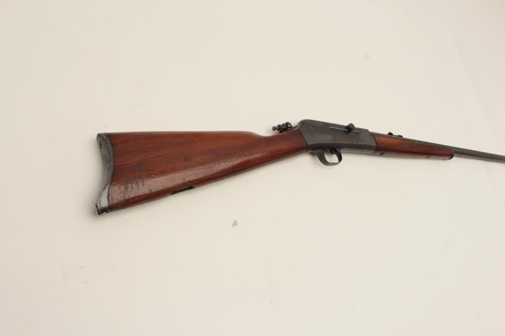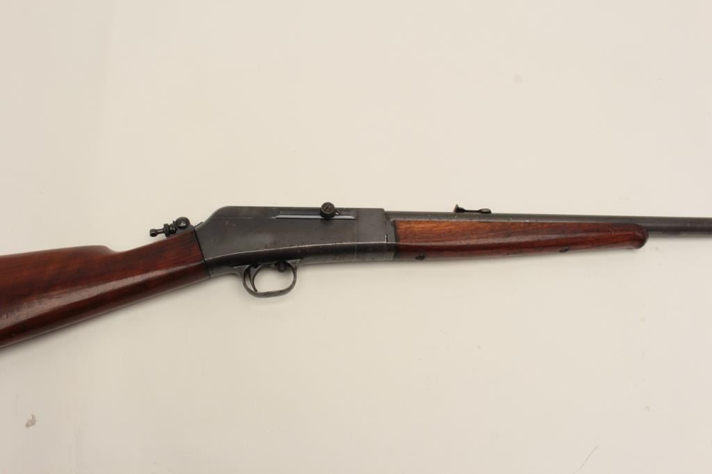 Remington Model 16 semi-automatic rifle, .22 Rem. autoloader caliber, 22” barrel, blued finish, wood stocks, S/N 6576, in overall good condition with the majority of its muted original blued finish remaining, good action and markings, Lyman adjustable tang sight, good wood stocks. (C&R/No PPT). Est.: $125-$250.