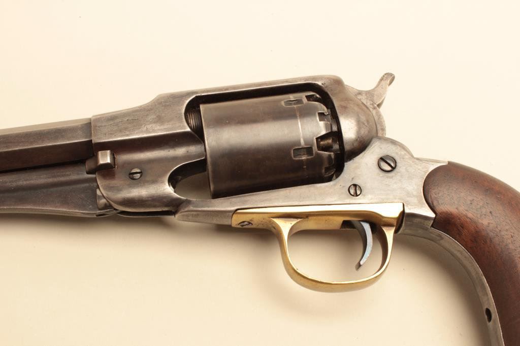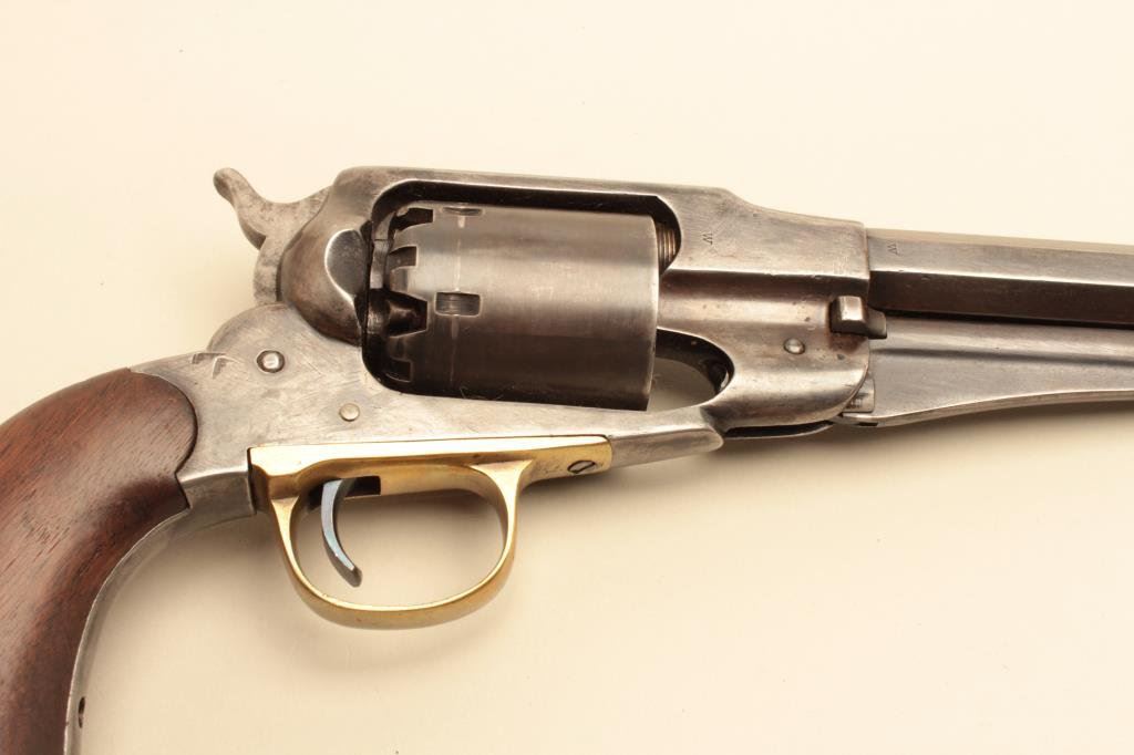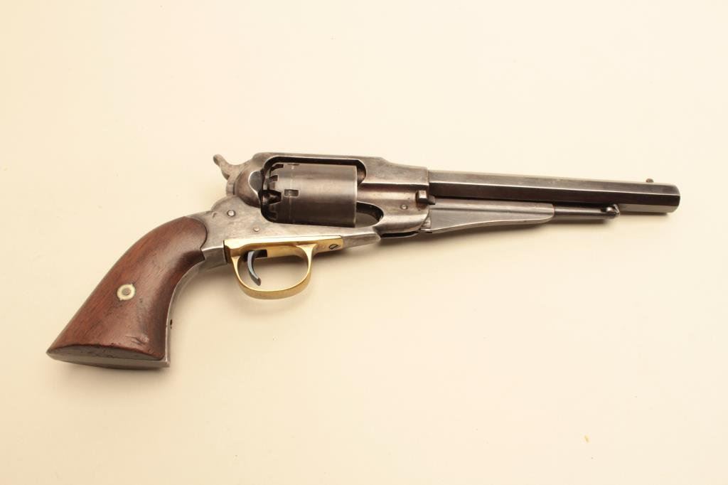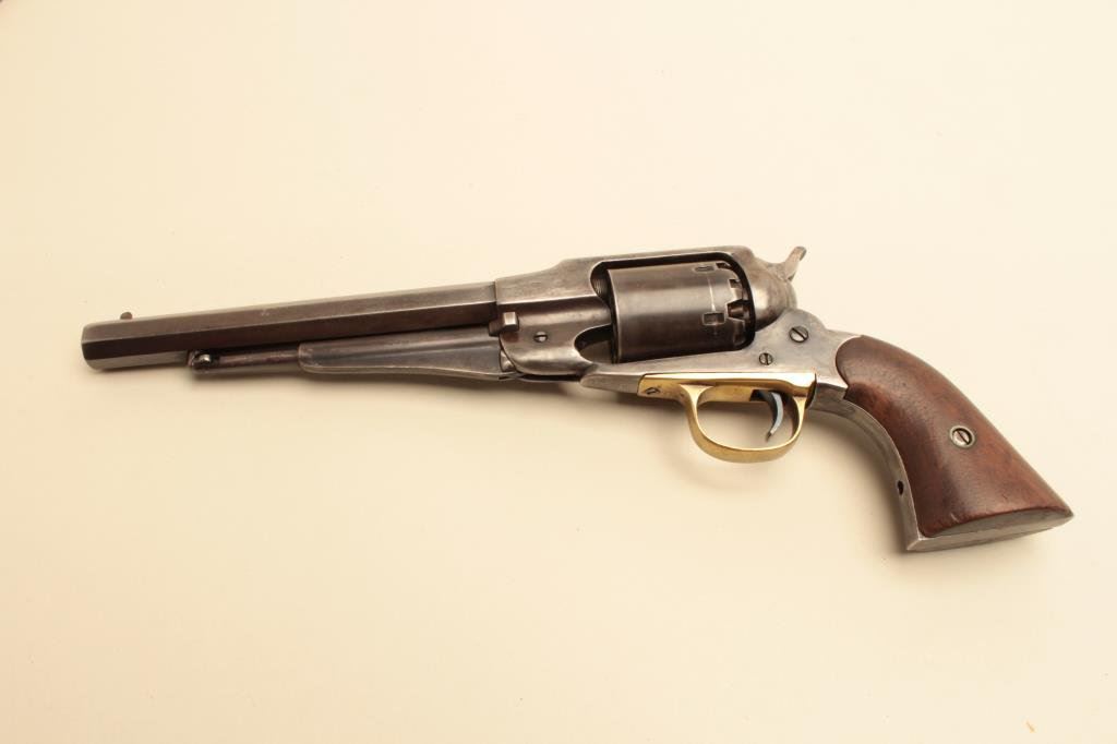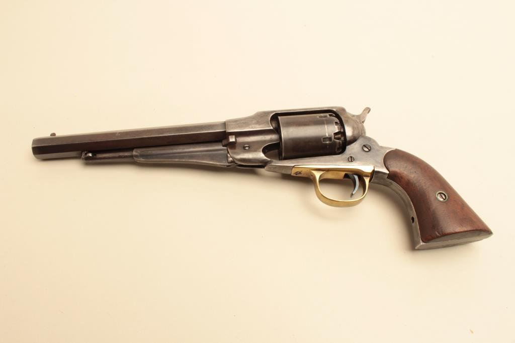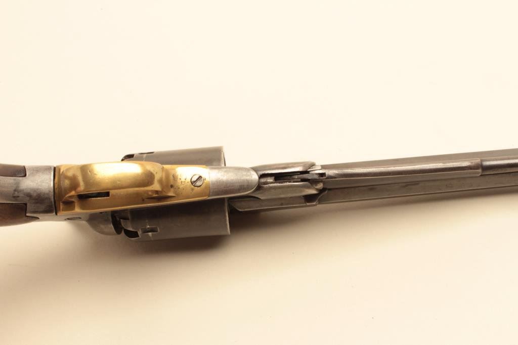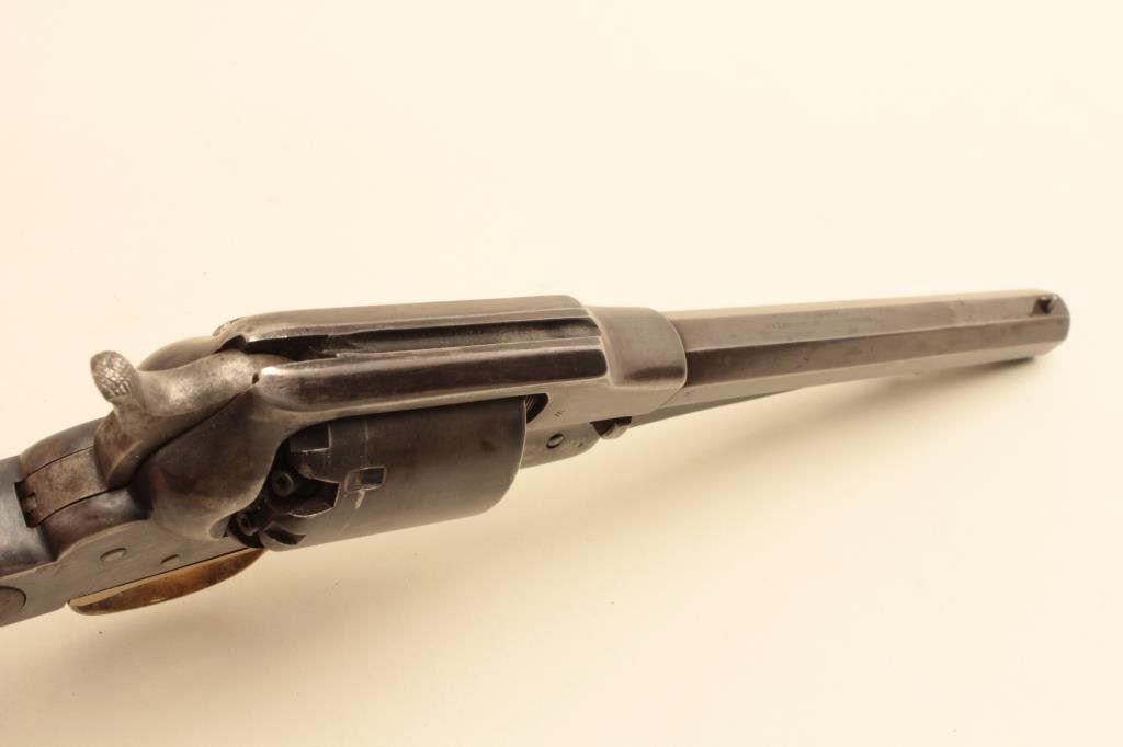 very good condition, S/N 55403. Approximately 40%-60% of arsenal type re-finish remains. The grips are refinished and the barrel address is legible but light. The bore is very good plus and the action is also good. Number 14 in large numbers stamped beneath the barrel possibly arsenal. (Antique) Est.: $400-$800