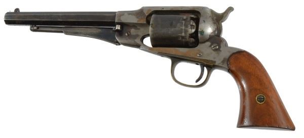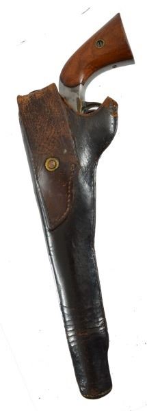 Serial no. 29865 .36 caliber in good working condition. retaining 50% original finish. with a California pattern open top holster with stamped edge embellishments.