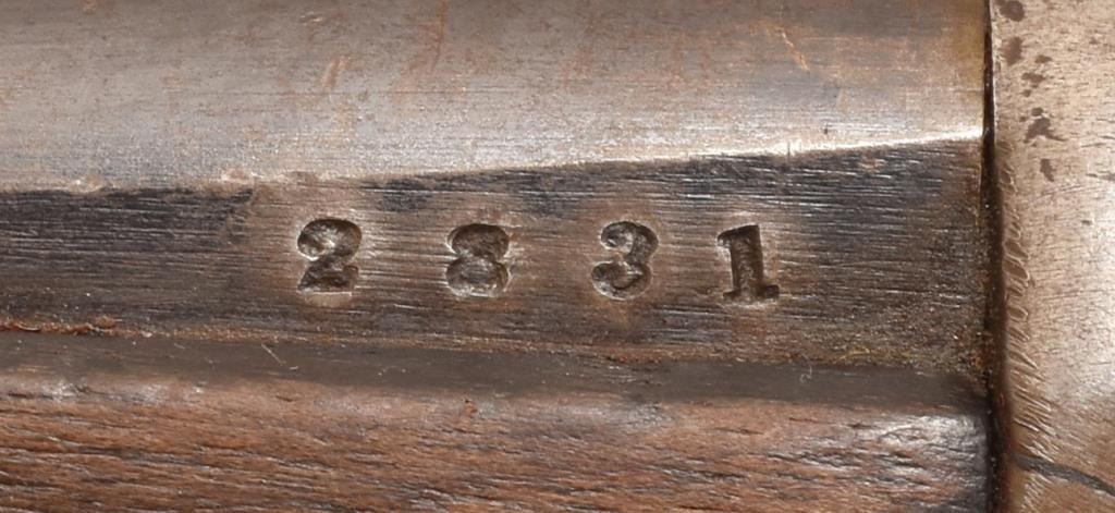 Anchor on barrel, 3 leaf rear sight. Barrel length 23" SN 2831