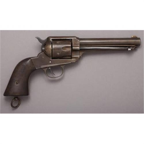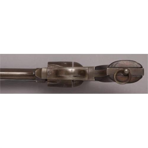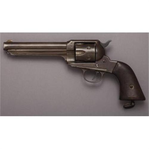 <B>REMINGTON MODEL 1875 SINGLE ACTION REVOLVER</B></I> - Serial Number 682. circa 1880s. 5 3/4” barrel in. 44-40 calibre. Functioning action with wood grips stamped “44 W”. Original factory roll address on top of barrel. Original lanyard loop on butt. <BR><BR><B>Condition:</B></I> Original barrel shortened to current length. It appears an original 1875 ejector housing with web has been modified to resemble the model 1890 configuration. Entire revolver has been cleaned at one time and was colored. Wood grips are decent with '44W' still visible on left side.<BR><BR><b>Shipping:</b> Bats, Clubs, Sticks, Swords, Rif (<a target="_blank" href="http://www.heritageauctions.com/common/shipping.php">view shipping information</a>)