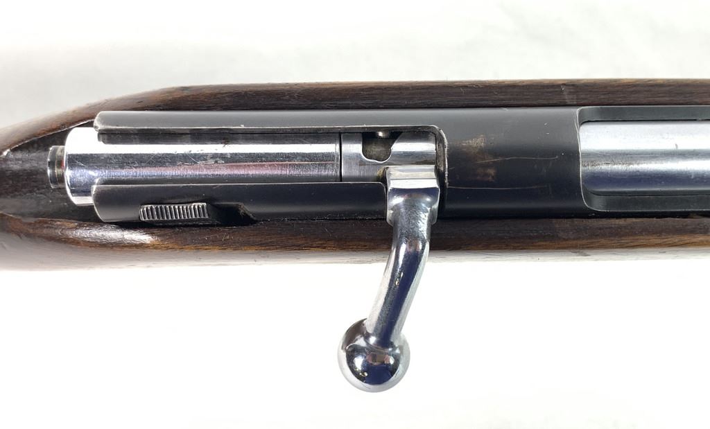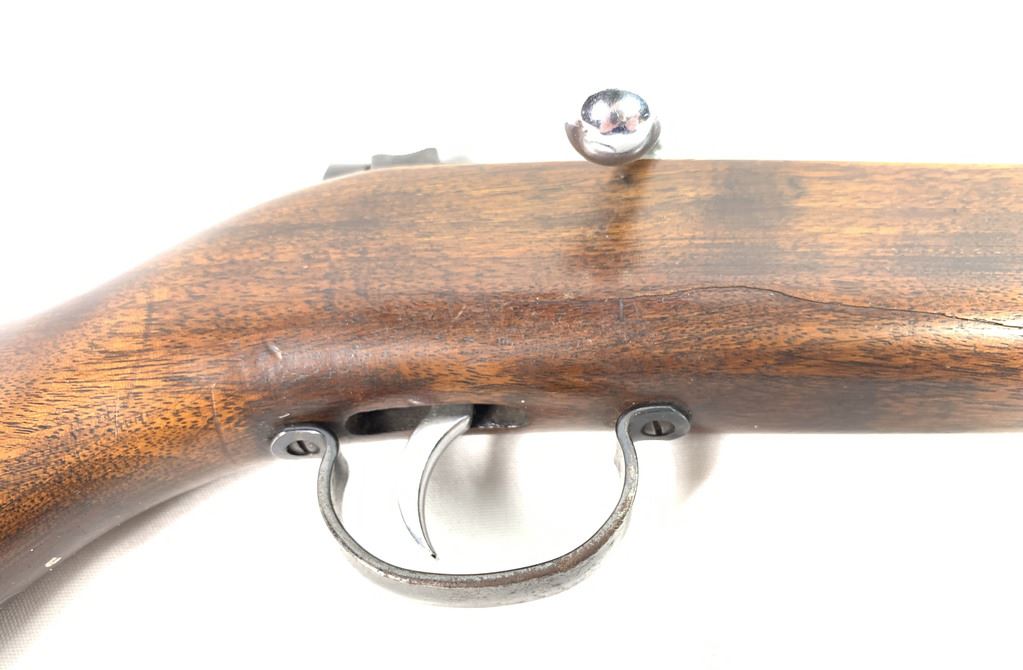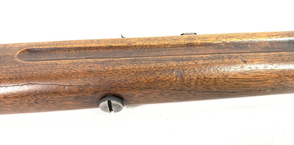Bolt action. 24" barrel. Rifle sights. Crack in forearm. SN 94379 Bright bore.