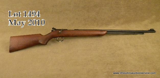 Remington Model 341-P bolt-action rifle, .22 Short, Long or LR cal., 24” round barrel, blue finish, wood stock, #NVSN. This gun is in overall excellent condition showing approx. 98% original blue finish, fine bore, crisp action, sharpmarkings, very good wood with just some scattered light scratches from storage; hooded front sight, adjustable peep rear sight, missing butt plate. Est.: $100-$200.