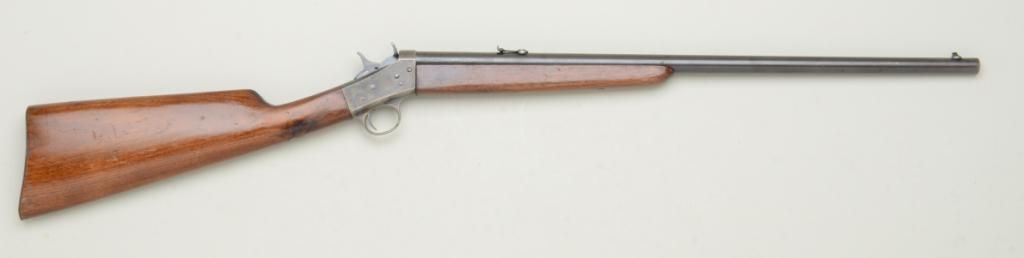Remington Model 4 takedown single shot rolling block rifle, .25-10 RF cal., 22-1/2” round barrel, blue and case hardened finish, wood stocks, #339663. This gun is in overall fine to excellent condition showing approx.96% original blue on barrel an approx. 98% original case colors on the receiver, fine bore, crisp action, sharp markings and overall fine wood stocks with some scattered mars and scratches to finish; a really cleanModel 4. Est.: $300-$600.
