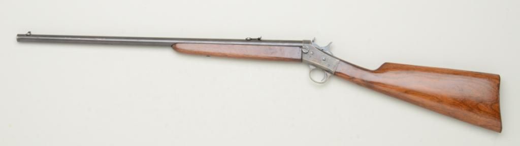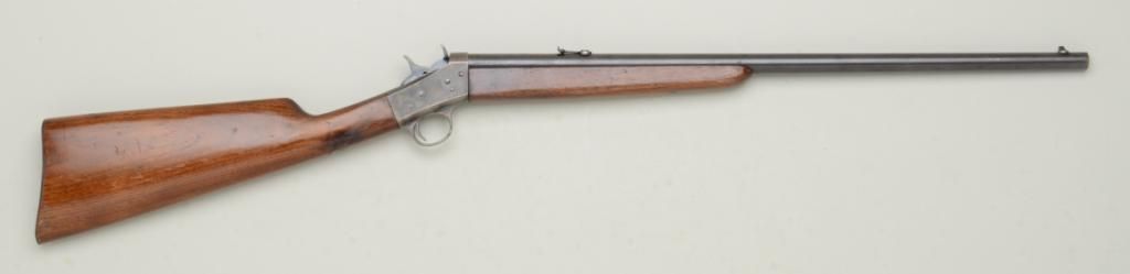 Remington Model 4 takedown single shot  rolling block rifle, .25-10 RF cal., 22-1/2”  round barrel, blue and case hardened finish,  wood stocks, #339663. This gun is in overall  fine to excellent condition showing approx.96% original blue on barrel an approx. 98%  original case colors on the receiver, fine  bore, crisp action, sharp markings and  overall fine wood stocks with some scattered  mars and scratches to finish; a really cleanModel 4.   Est.:  $300-$600.