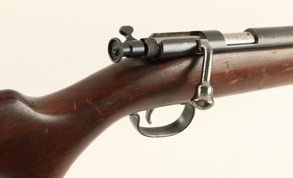 Remington Model 41 Targetmaster bolt action rifle, .22 short, long or LR caliber, 27” round barrel, no visible S/N, blued finish, wood stock in overall good condition showing considerable original blue on barrel, very good bore, goodaction, markings and wood stock. (C&R). Est.: $80-$160.