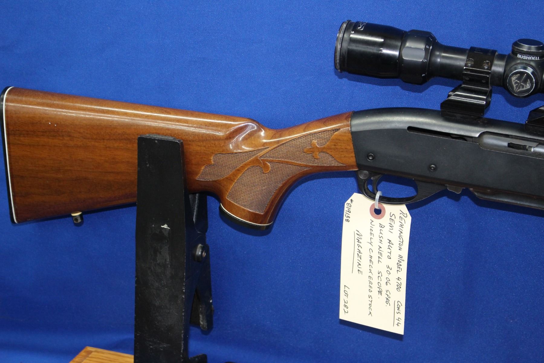 30.06 SPRG; Semi-Auto; Nicely Checkered Stock; Bushnell Scope; Magazine; Good Condition; S/N 819138
