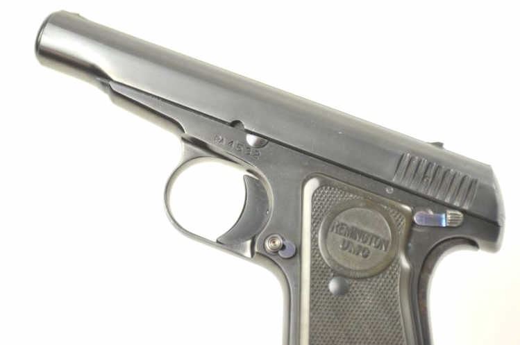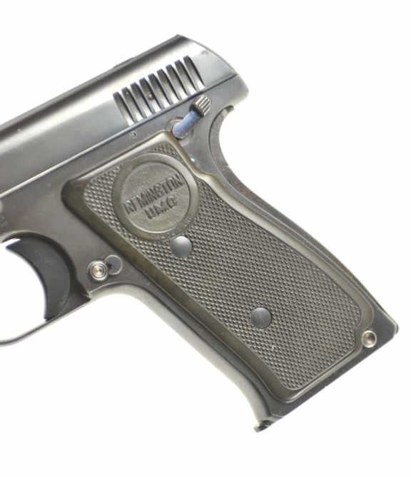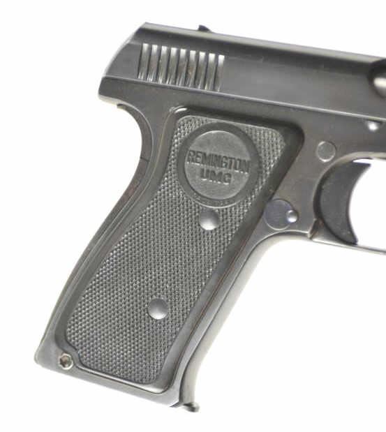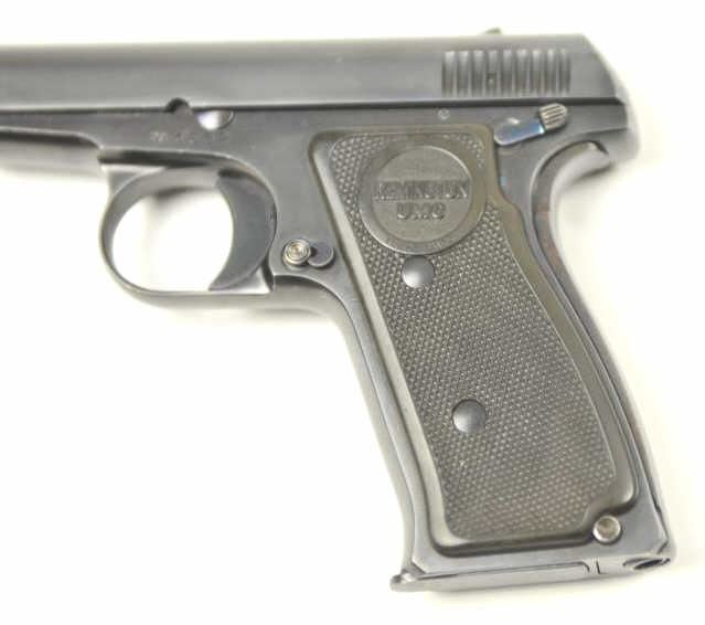 Remington Model 51 semi-automatic pistol, .380 ACP caliber, Serial # PA 4532. The pistol is in nearly excellent overall condition retaining approximately 97-98% of the original blue finish with only lighthandling marks. The checkered plastic Remington marked grips are in near fine condition. The lot includes one correct magazine. The bore is good, the action is crisp and the markings are sharp on thisdesirable Remington. Est.: $1,750-$3,500. (C+R/PPT).