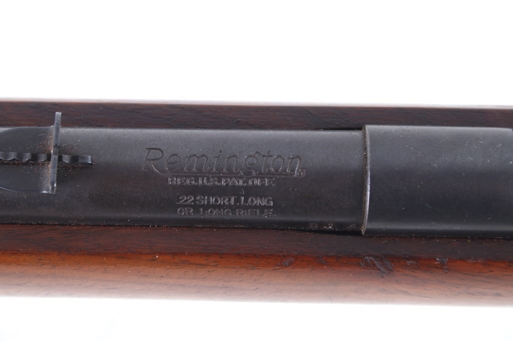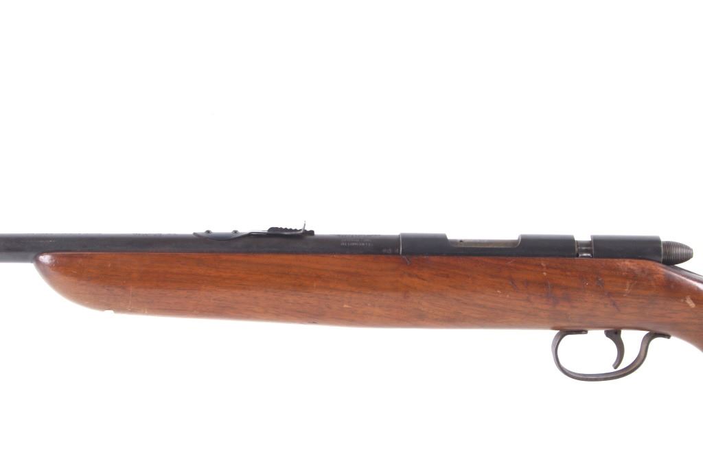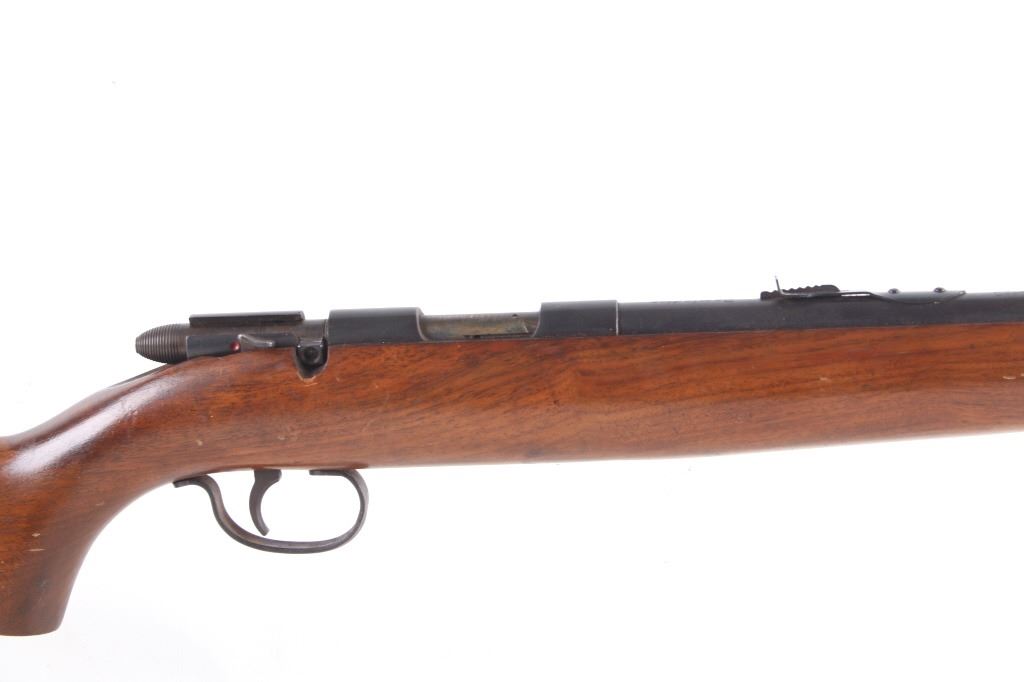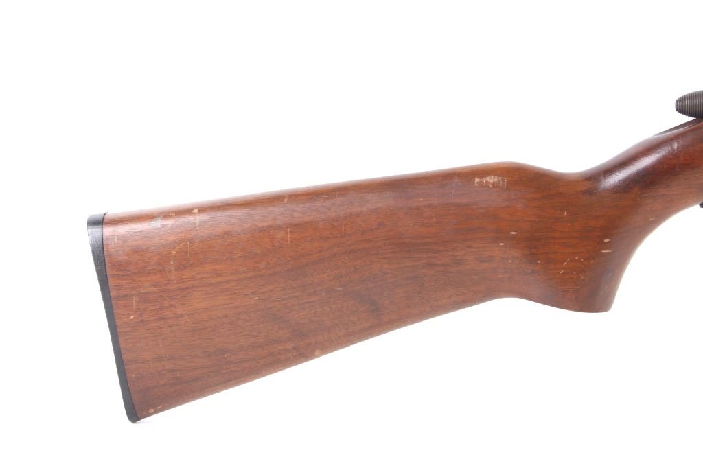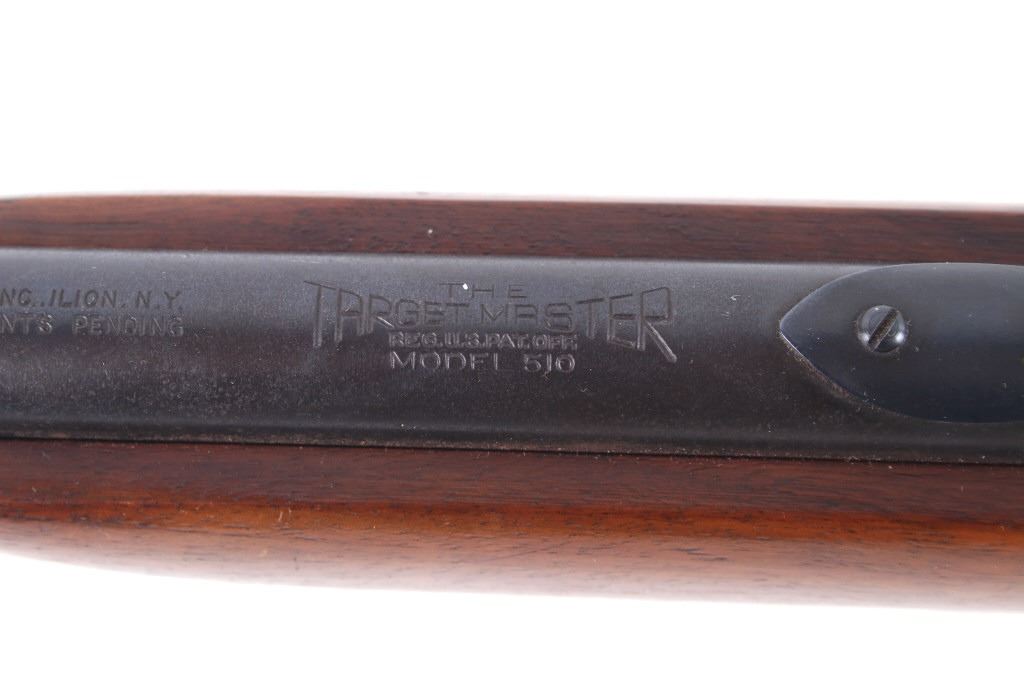 Included in this lot is a Remington Model 510 Targetmaster single shot .22 caliber bolt action rifle. This rifle features a 25” round barrel chambered in .22 Long, Short, and Long Rifle caliber. The barrel is equipped with a dovetailed front sight and adjustable buckhorn rear sight. The top of the barrel is stamped “Remington Arms Co., Inc. Ilion N.Y. Made in U.S.A. – Patents Pending, The Targetmaster Reg. U.S. Pat. Off. Model 510, Remington Reg. U.S. Pat. Off. .22 Shot, Long, or Long Rifle”. The rifle has a straight grain walnut stock and flat checkered rubber butt stock with Remington insignia. The rifle shows fair condition for its age and the action operates as intended with the bolt arm missing and needing to be replaced. Serial Number: DJ4. This firearm qualifies as a Curio & Relic and requires FFL Transfer or NICS Background Check.