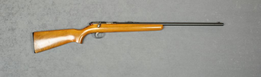 Remington Model 514 bolt-action rifle, .22 short, long or LR cal., 24” round barrel, black finish, wood stock, #NVSN. This gun is in overall fine to excellent condition showing approx. 98% original finish, finebore, action, markings and wood stock. Est.: $125-$250.