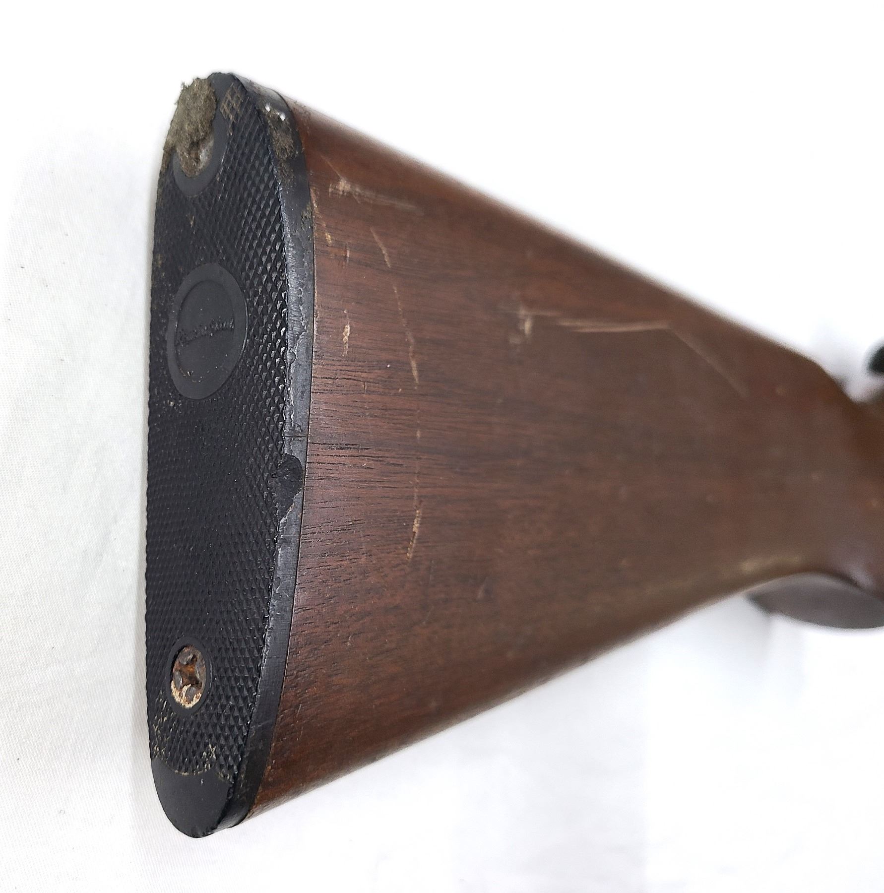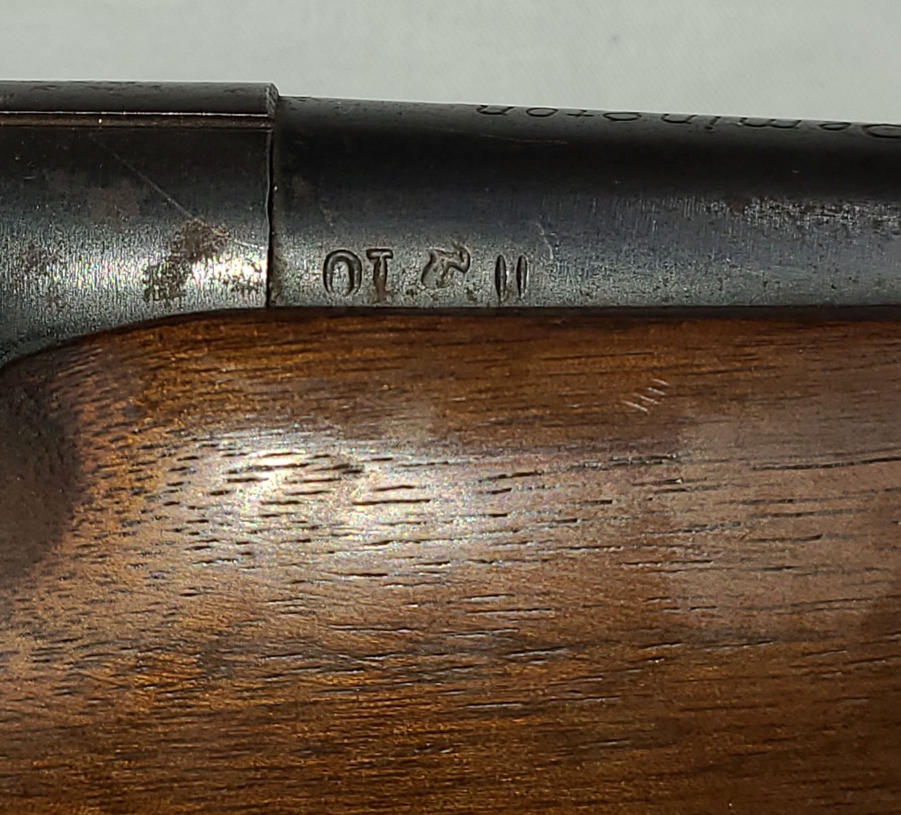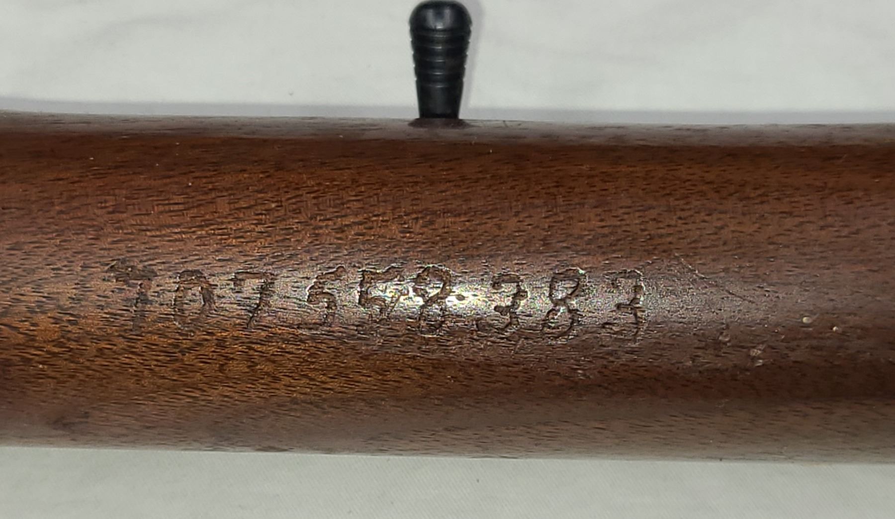Has previous lowners id nuimber carved into stock lower ahead of trigget guard.
