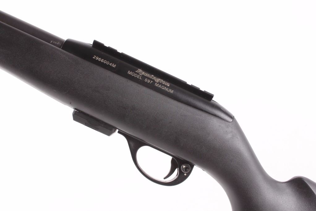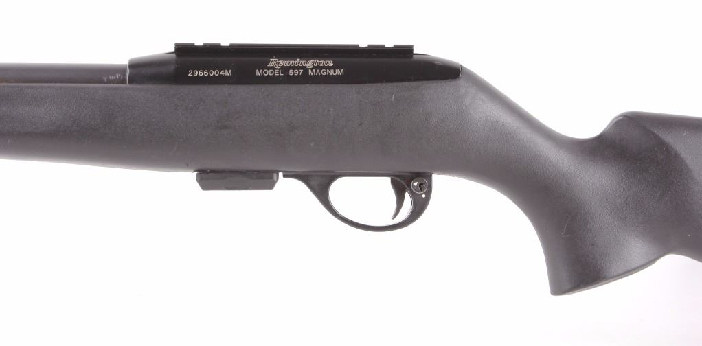 This lot features a Remington model 567 magnum .17 HMR rifle. The rifle is chambered for .17 HMR, barrel length of 18 1/2" and included in this lot is a magazine for the rifle which are extremely difficult to find. The rifle also has a top mounted attachment rail for mounting a scope or other attachments. Overall the rifle appears extremely clean and does not seem to have seen much use. The stock is in beautiful shape as well as the barrel. Overall this gun is in good condition. Serial numbers: 2966004M Modern rifle FFL transfer or NCIS background required.