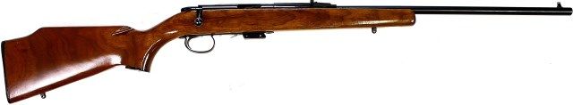 bolt action rifle 24" barrel, blued finish, walnut stock. Rifle very good to near fine condition, original clip and 2 boxes of ammo. Modern. Est. 300-500