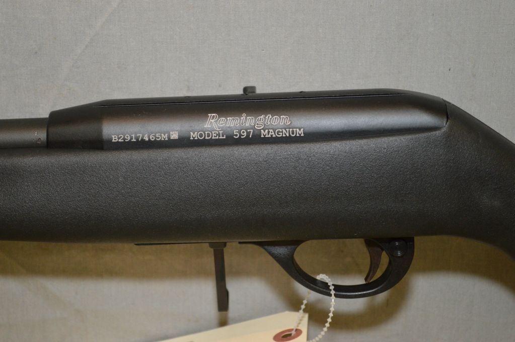 Remington Model 597 Magnum .22 Mag Fed Semi Auto Rifle w/ 20" bbl [ N.I.Box w/booklet, flat black finish, barrel sights, black composite pistol grip stock ] Ser # B2917465M