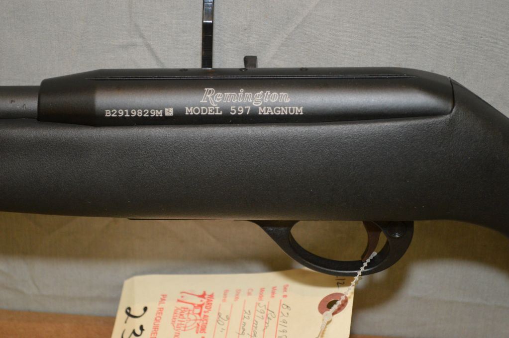 Remington Model 597 Magnum .22 Mag cal Mag Fed Semi Auto Rifle w/20" bbl [ N.I. Box w/booklet, flat black finish, barrel sights, black composite pistol grip stock ] Ser # B2919829M
