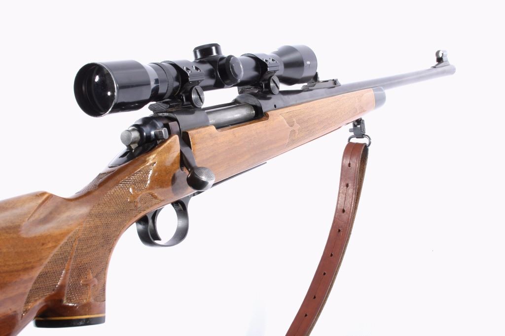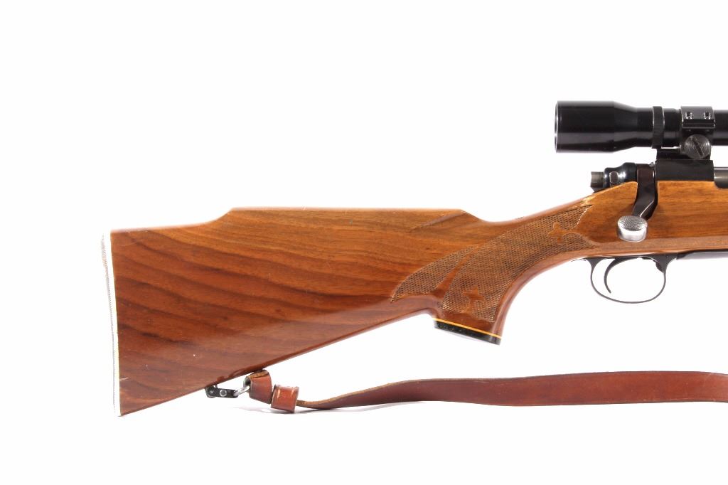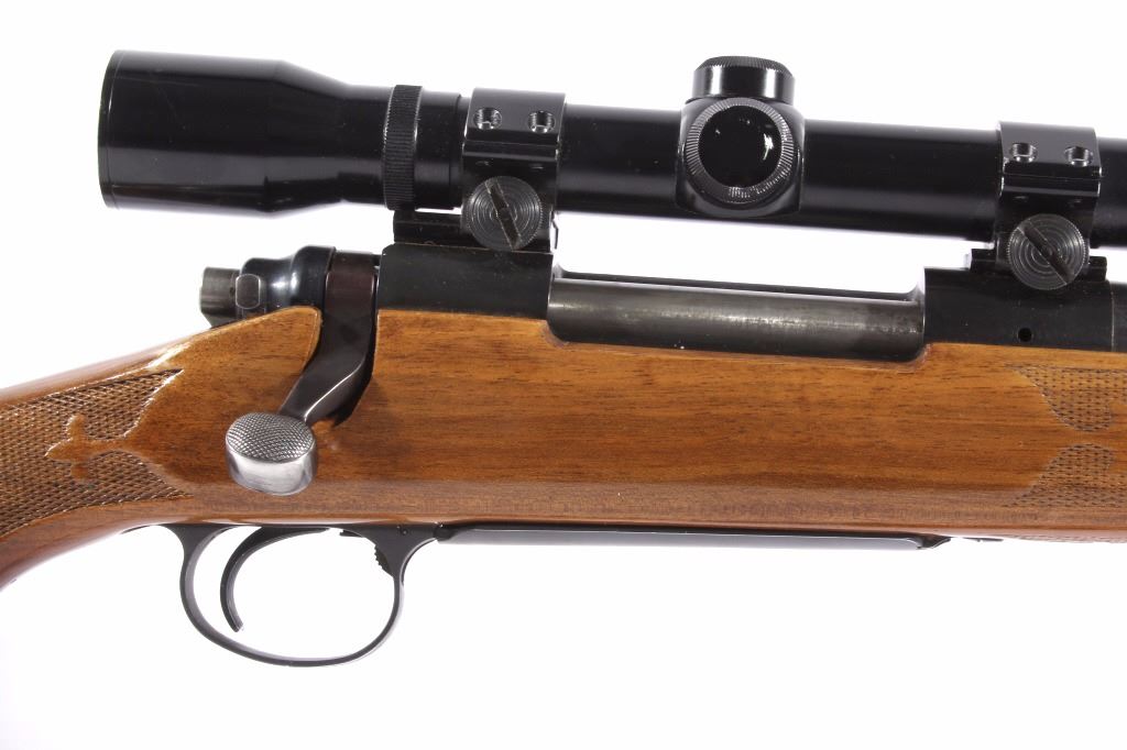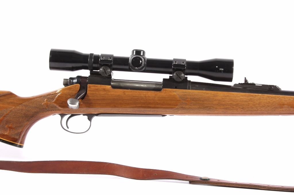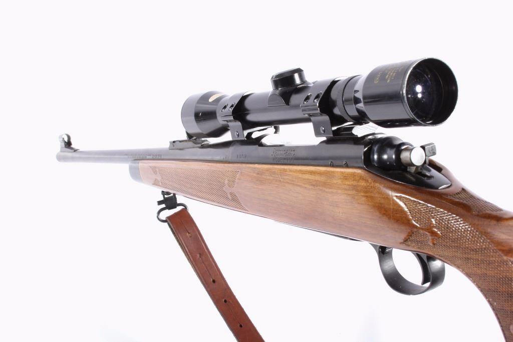 Offered for sale is a Remington Model 700 30-06 Bolt Action Rifle. The rifle features a 22" barrel, 4x32 scope, checkered monte carlo walnut stock, iron sights, and sling. The Remington Model 700 is a series of bolt-action rifles manufactured by Remington Arms since 1962. The rifle can also be ordered with a detachable box magazine. The Model 700 is available in many different stock, barrel and caliber configurations. It is a development of the Remington 721 and 722 series of rifles, which were introduced in 1948. The Remington model 700 is considered to be the number one bolt action of all time. More model 700 have been sold than any other bolt action before or since. The rifle is in good condition, showing 85% bluing and little wear to the stock. The rifle was manufactured in 1967. It is a modern rifle and requires a FFL transfer or NICS background check. The serial number is 310712. The overall length is 42 1/4"