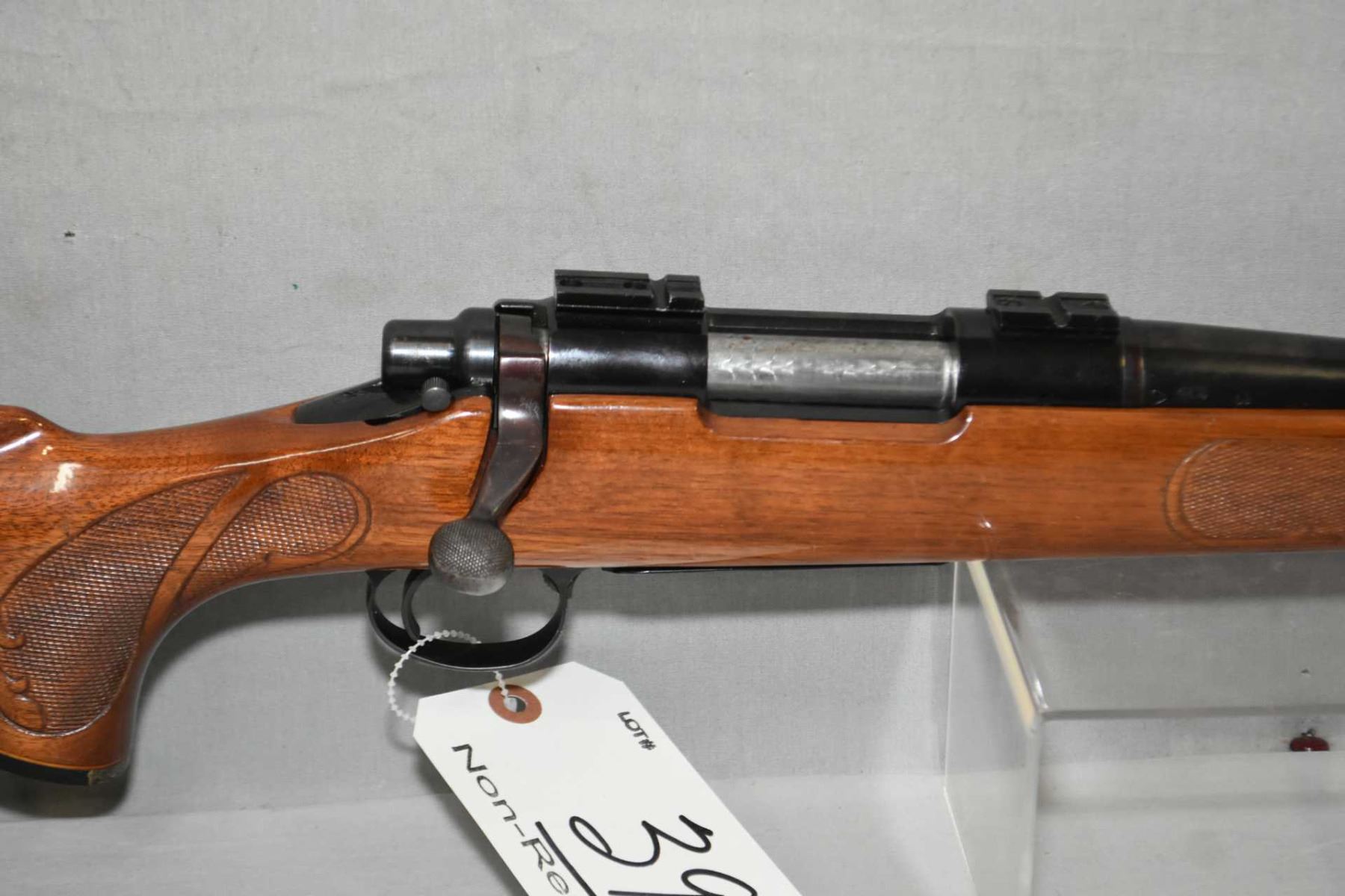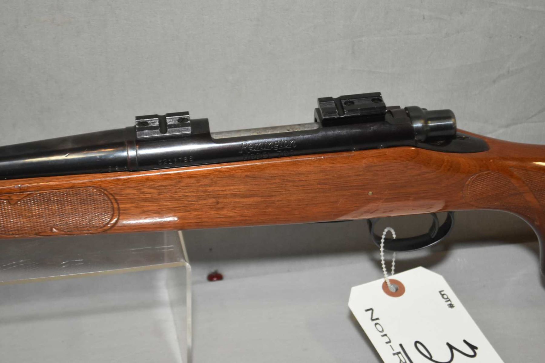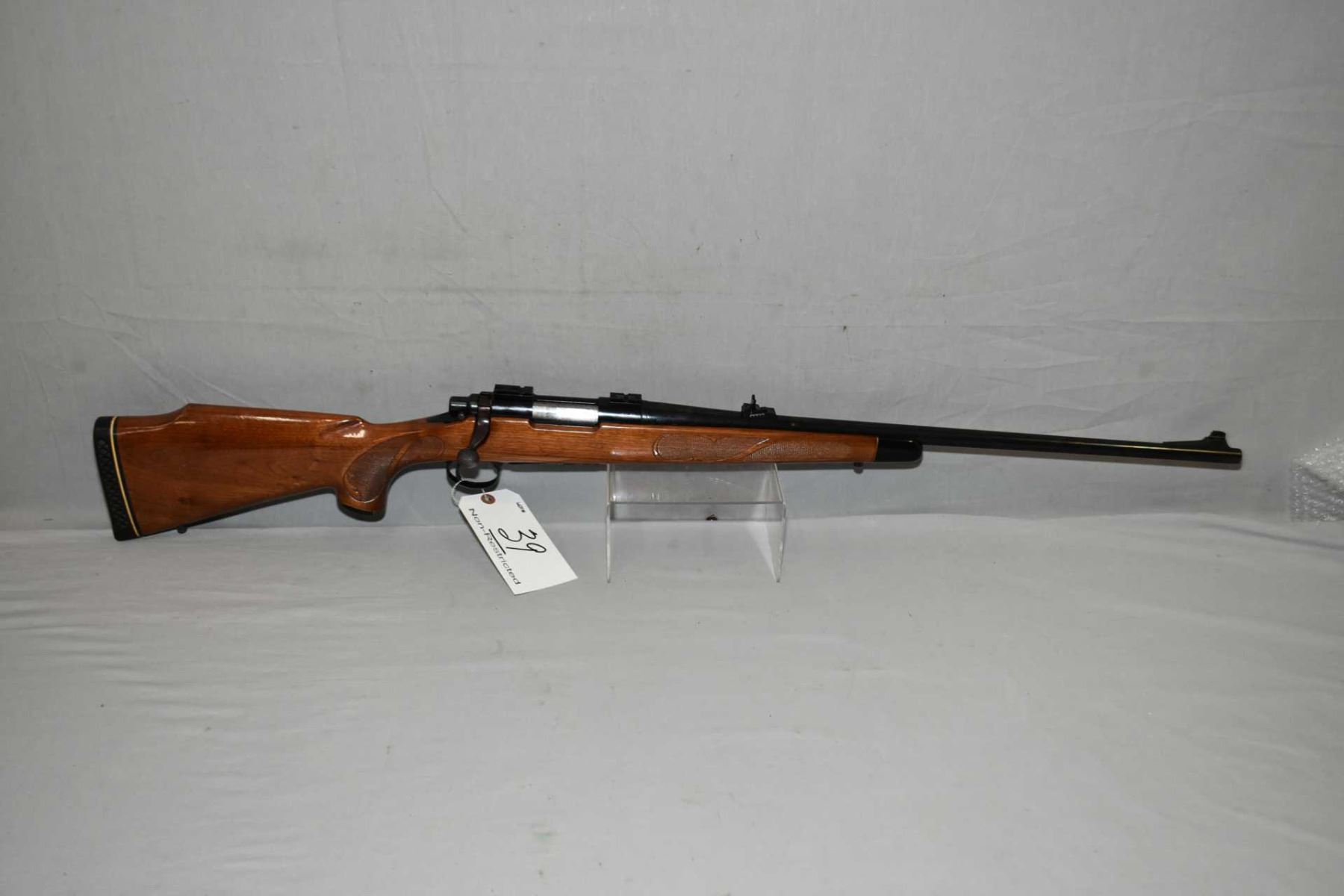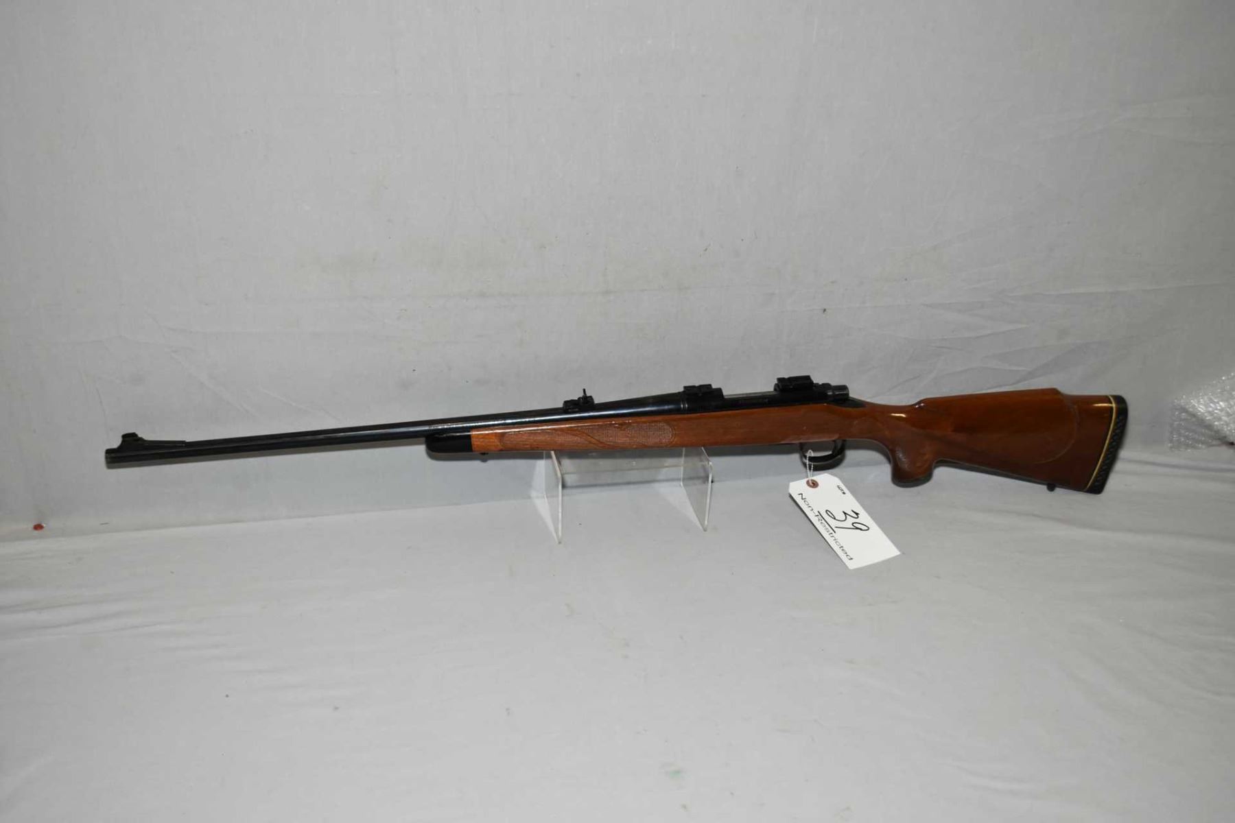 Remington Model 700 .350 Rem Mag Cal Bolt Action Rifle w/ 24" bbl [ blued finish, showing some wear mostly to bolt knob, Williams rear sight, also has scope bases, pressed checkered pistol grip stock & forend, with black caps, appears revarnished, Remington recoil pad ] Ser # 6213786