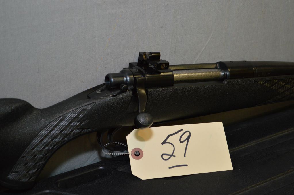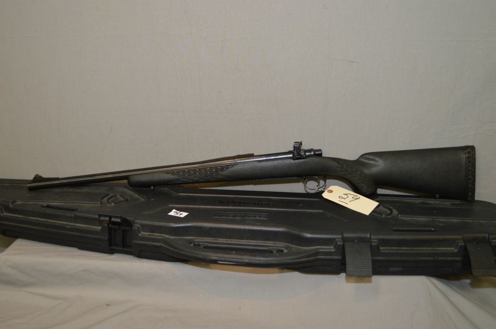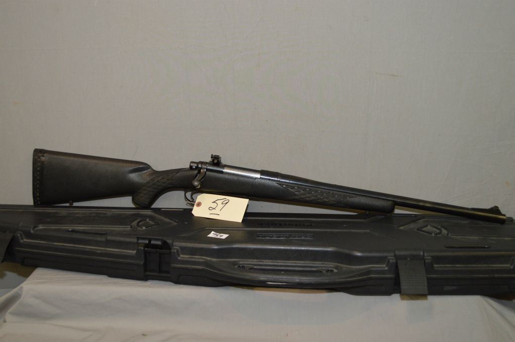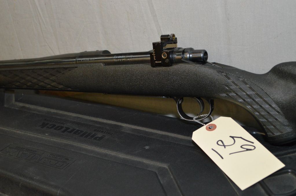 Remington Model 700.416 Rem Cal Bolt Action Rifle w/ 21" heavy bbl [ appears v-good, slight wear on trigger guard & foreplate, blued finish, front barrel sight & back reciever mounted Williams peep sight, Timney trigger, Ram Line black synthetic checkered stock w/recoil pad, c/w PIllarlock black hard plastic rifle case ] Ser # C6616981