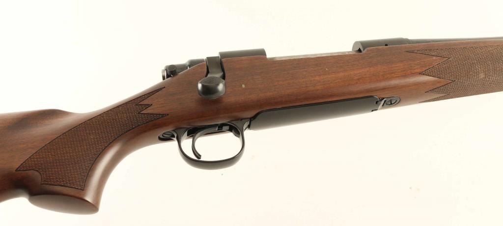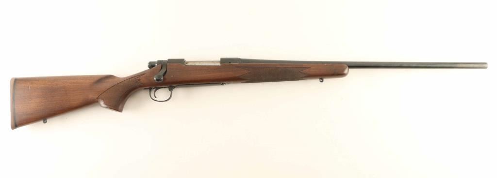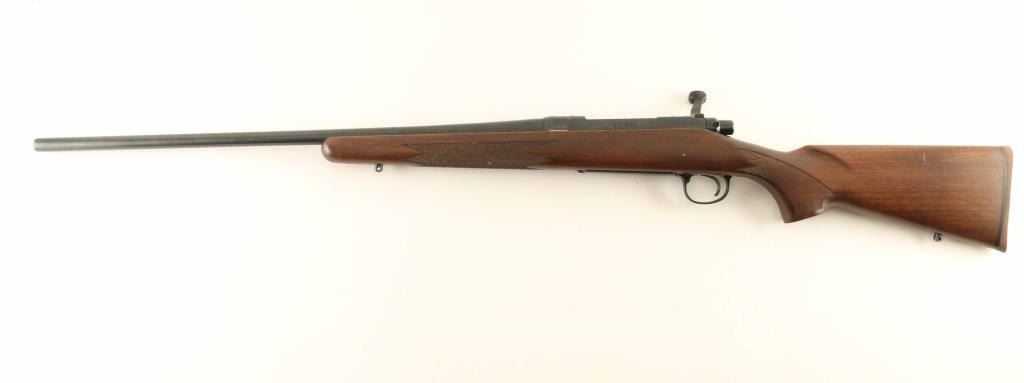 Bolt Action Rifle, USA Made, 24 inch Barrel, Blued Finish, Wood Stock, No open sights, Factory drilled for scope mount,, Hinged floorplate, Two safety bolt keys, Bluing is fine, Stock has minor digs, Bore appears excellent but dirty, NRA Very Good Modern Firearm