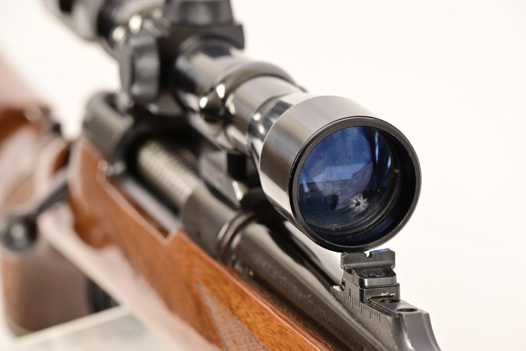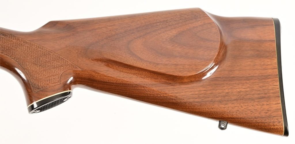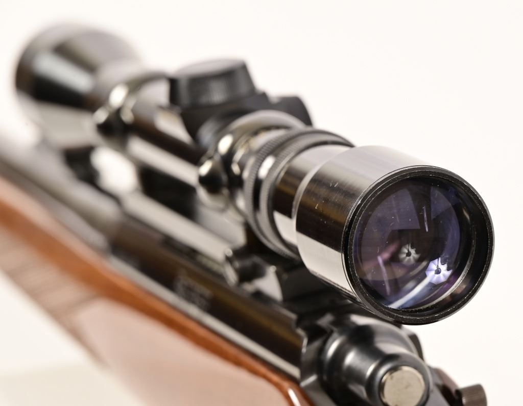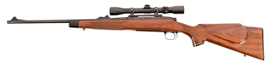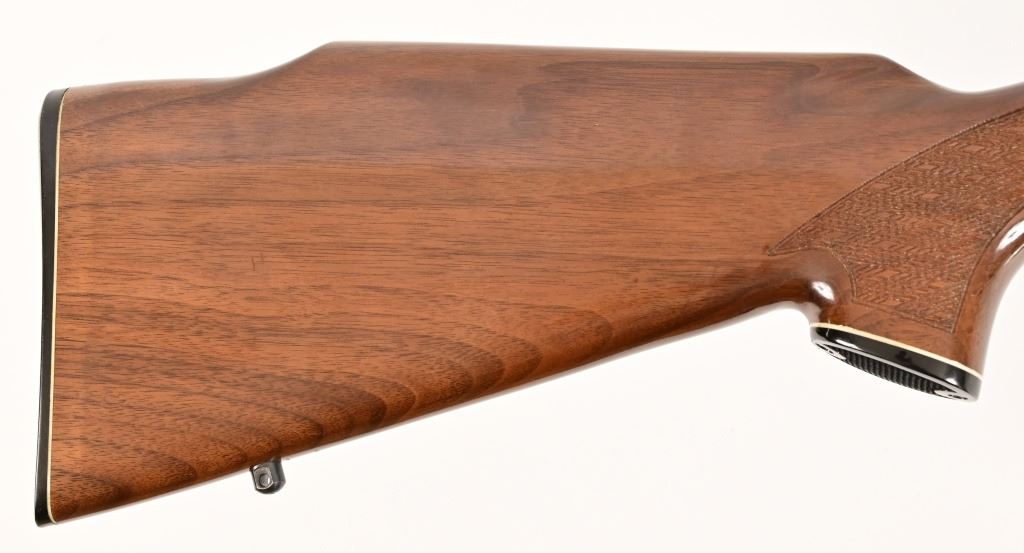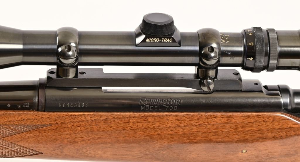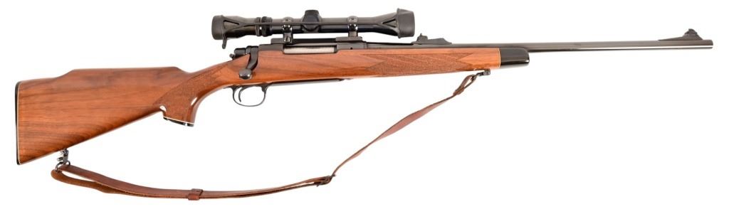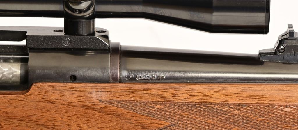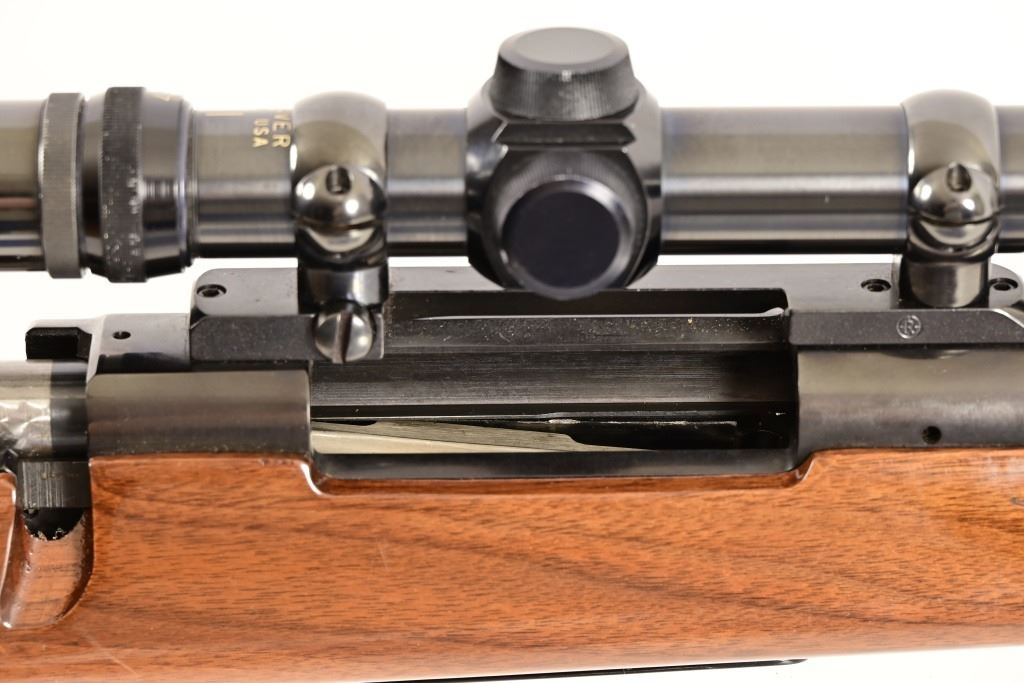 S/N B6443433. Very good condition, with Weaver V7-II scope, checkered wood stock, 22" barrel and leather sling. Modern