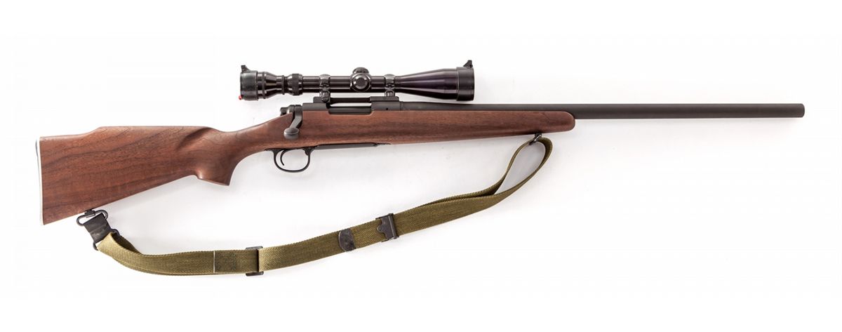 Remington Model 700 (M40) USMC Tribute Bolt Action Sniper Rifle, #SSA0284, 7.62x51mm Nato (.308 cal.), 24'' medium-weight barrel, parkerized finish, factory smooth cheekpiece pistol-grip stock, with correct M40 aluminum buttplate. Topped with period correct Redfield Accu-Trak 3-9x scope with bullet-drop compensator and fine crosshair reticle, on Redfield rings and mounts. Rifle features glass-bedded receiver, free-floating barrel, single stage Remington adjustable trigger. Appears to be one of the Remington M40s made for the commercial market as produced in 2007. Condition is excellent as modified, showing little use and just light marks from handling. Action and trigger are crisp, bore is mirror bright, scope optics are clear. Est.: $1,800-$2,400. (Modern) (Ian Shein estate)