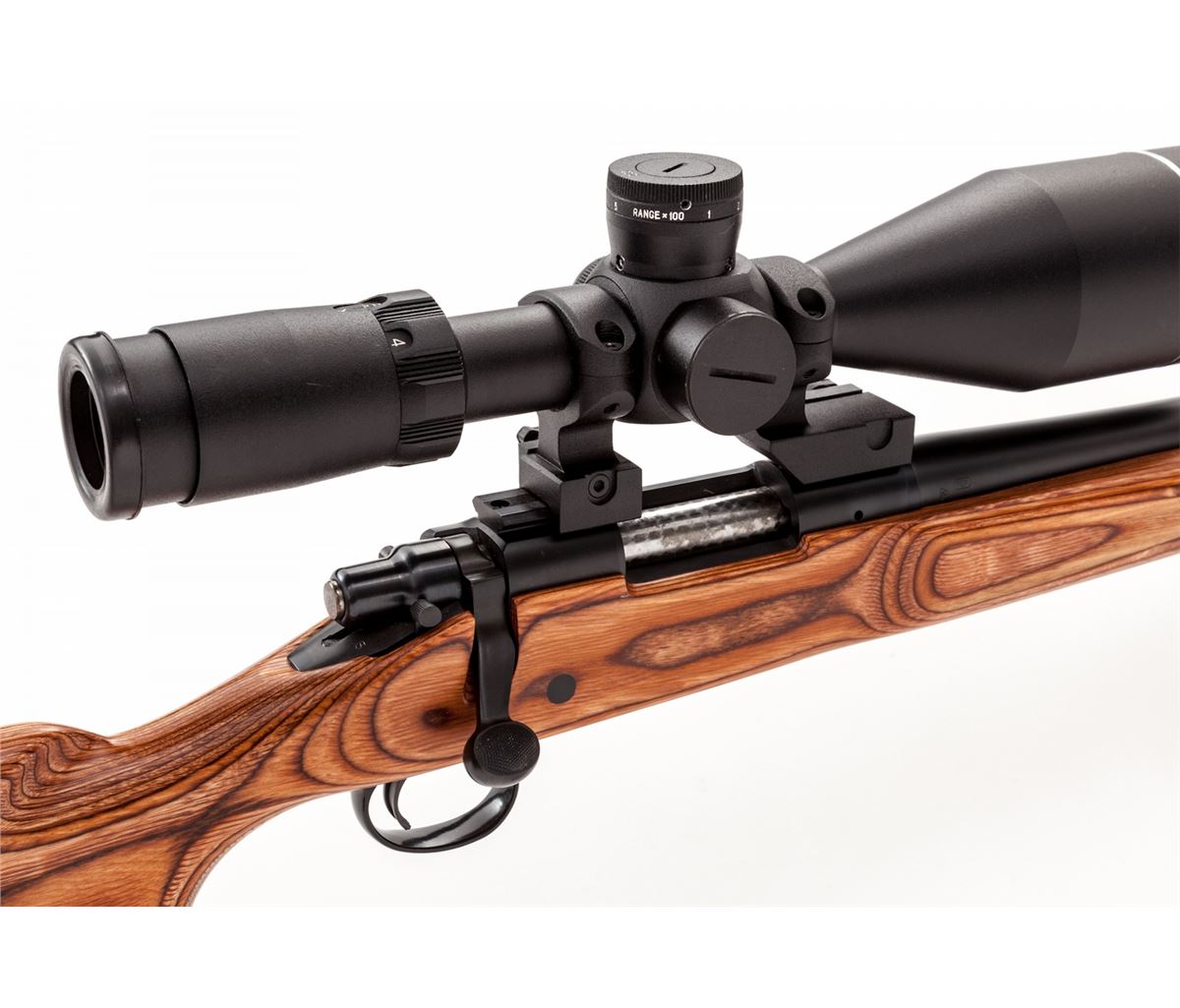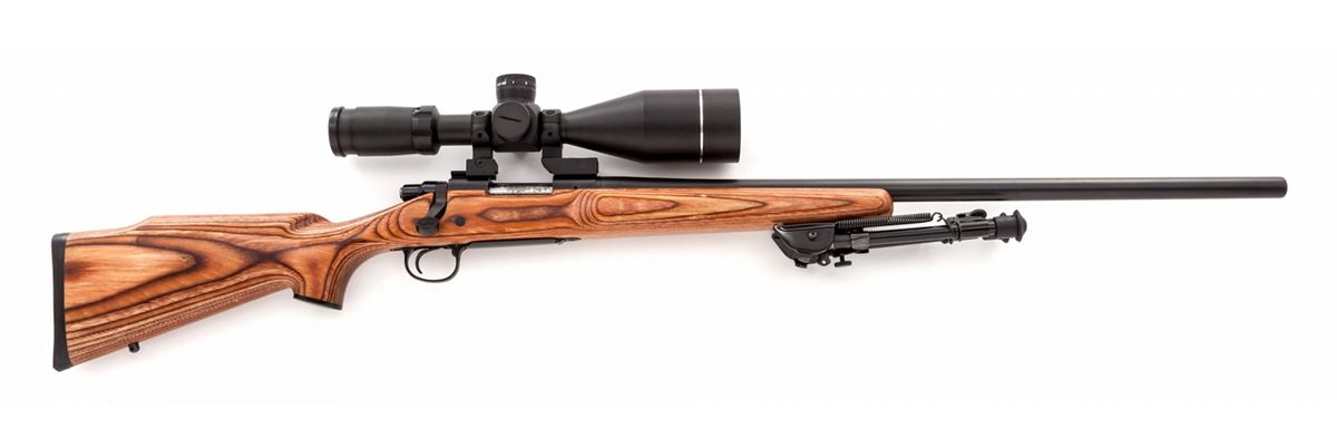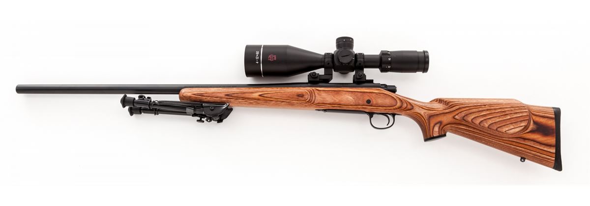 Remington Model 700 Bolt Action Varmint Rifle, #G6342542, .22-250 cal., 26'' medium-weight barrel, matte finish, laminated stock, with large format 4-12x60 ATN scope and Harris bipod. Condition is excellent showing little use. Est.: $600-$800. (Modern)