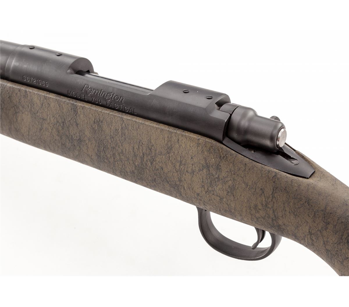 Remington Model 700 XCR Tactical Bolt Action Rifle, #S6721969, .223 Rem. cal., 20'' fluted 1 in 9'' twist barrel, matte finish, OD green with black accent pistol-grip synthetic stock, Remington hard rubber recoil pad with gun lock, in original box with matching end label and owner's manual. Condition is excellent, remaining new and unfired. Matte finish with light marks from handling. Retails @ $1,364.95. Est.: $750-$1,000. (Modern) (Field Time)