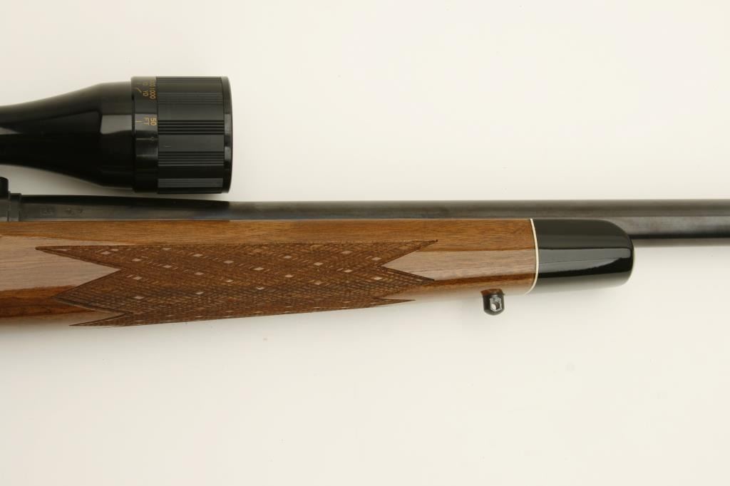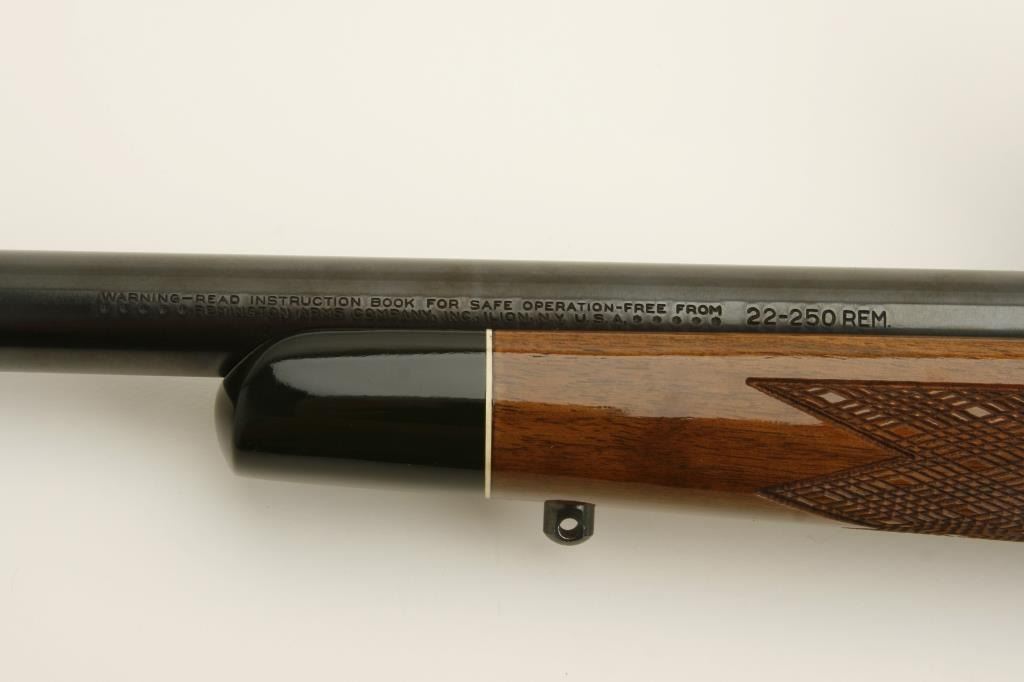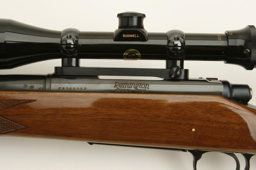 Remington Model 700 bolt action rifle, .22-250 caliber, 24” round barrel, blued finish, checkered wood stock, S/N C6360350, in overall fine to excellent condition, fine bore, crisp action and markings, fine stock;mounted with a Bushnell Scopechief VI scope with sharp optics. (Modern). Est.: $400-$800.