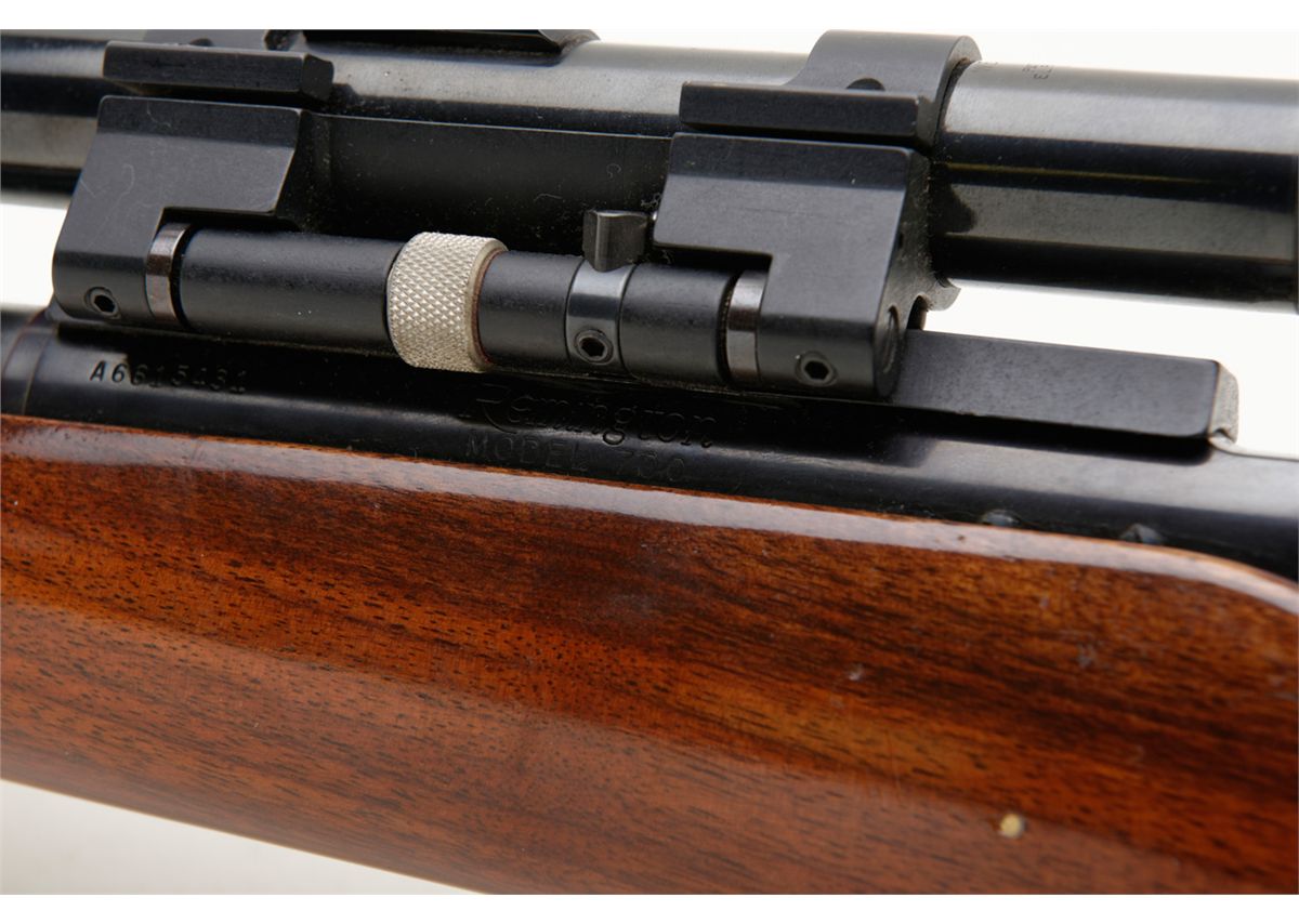 Remington Model 700 bolt action rifle, .243 cal. with side swing mounted scope (K-4 Weaver); very good used condition, #A6615431. Est.: $300-$600.