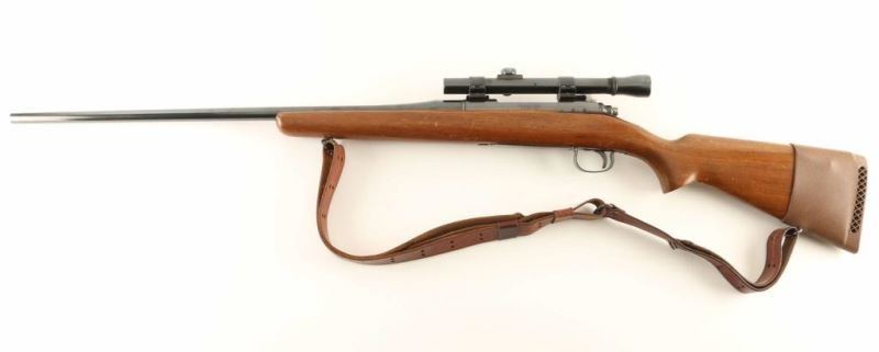 Vintage bolt action rifle features blued finish, bright metal bolt, smooth wood stock, no cheekpiece, slip-on ventilated rubber recoil pad, sling swivels, 25" barrel (appears custom replacement - no markings other than caliber), no sights, two piece Weaver type bases & rings, floorplate held by screw, manual safety. Bore is excellent condition. Retains 85% blue, thinning or showing bare metal on edges, scratches & scuffs several places. Wood is very good condition with scratches and scuffs. Mounts a very good condition Lyman Alaskan 2.5x scope with clear view, post & crosshair reticle. Includes good condition leather sling. Condition is NRA Very Good+ *** C&R Firearm ***