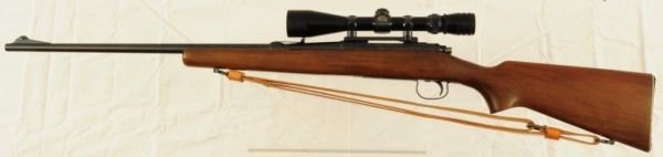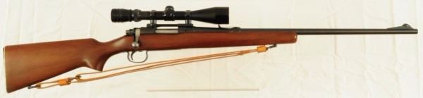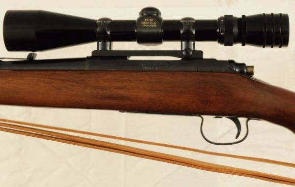 * With 3X-9X Redfield tracker scope. Leather sling and instruction manual. Mfg approximately 1955-1960. Very good condition.