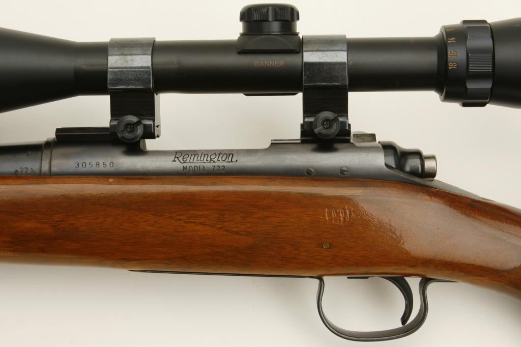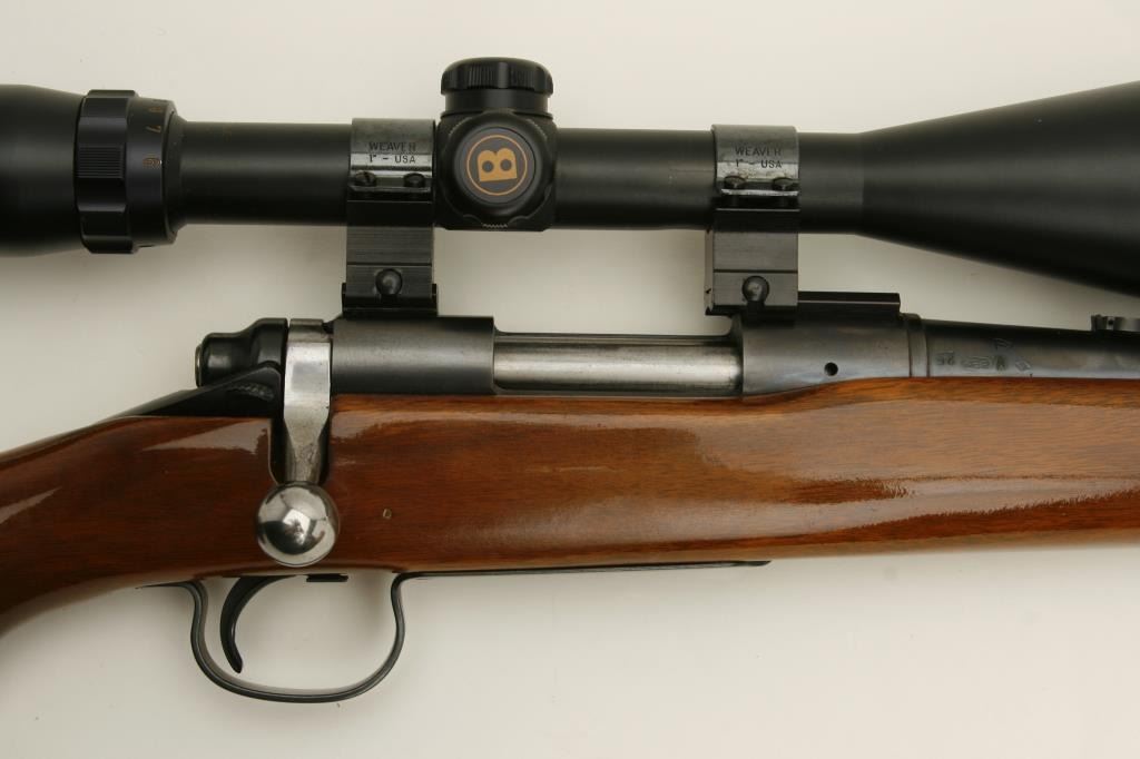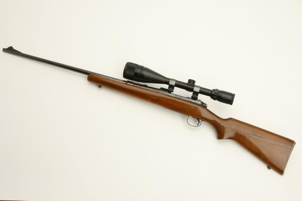 caliber, 26” round barrel, blued finish, re-finished wood stock, S/N 305850, in overall very good to fine condition showing the majority of its original blue finish, fine bore, crisp action and markings; mounted with a Banner scope with crisp optics. (Modern). Est.: $400-$800.