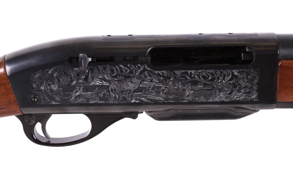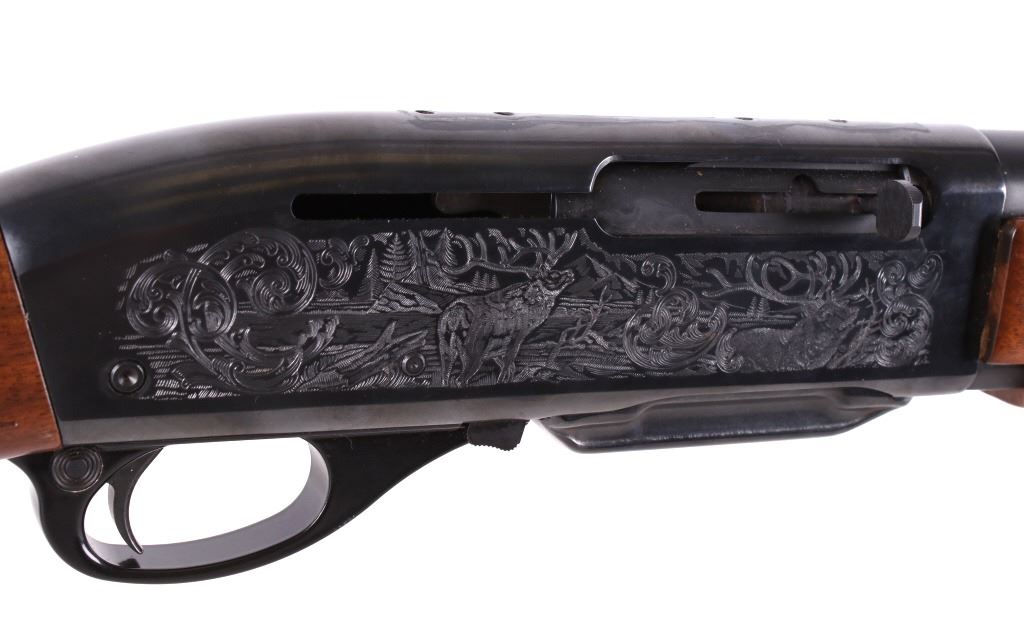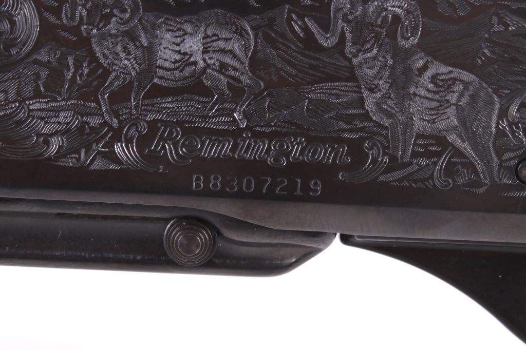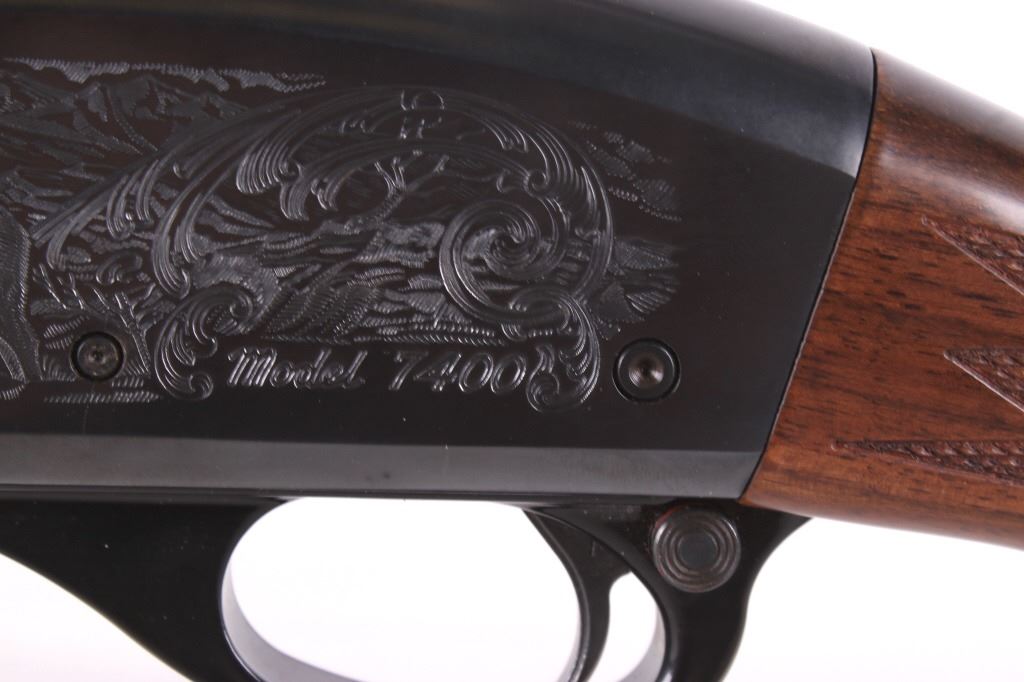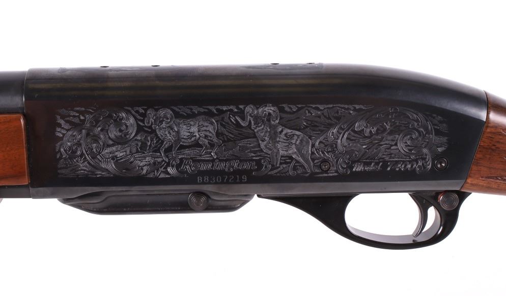 For your consideration is a wonderfully engraved Remington Model 7400 .270 Win semi-automatic rifle. This rifle utilizes a 22” blued round barrel chambered in .270 Win. The straight grain walnut stock features crisp checkering on the fore grip and pistol grip. The stock shows minor dents from use. The blued receiver features a beautiful big horn sheep engraving on the left side and Rocky Mountain elk engraving on the right side. The left side of the barrel is marked “Remington Arms Company, Inc., Ilion N.Y. U.S.A. – 270 Win.” The magazine contains the bolt release and the firearm comes with a front and rear swing swivel. The gun is in good overall condition. Serial Number: B8307219. This is a modern firearm and requires a FFL transfer or NICS background check. Matt