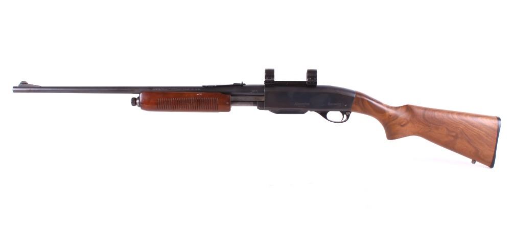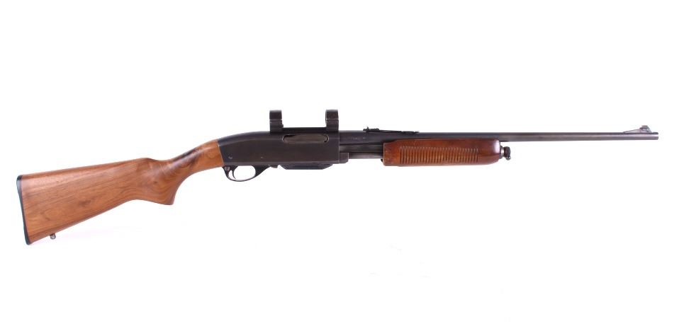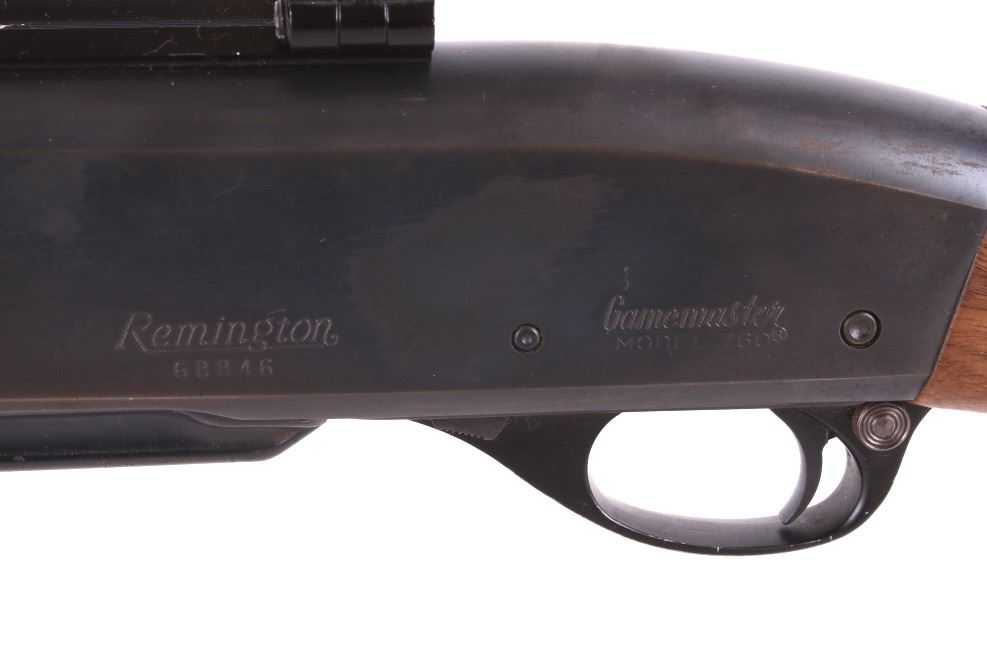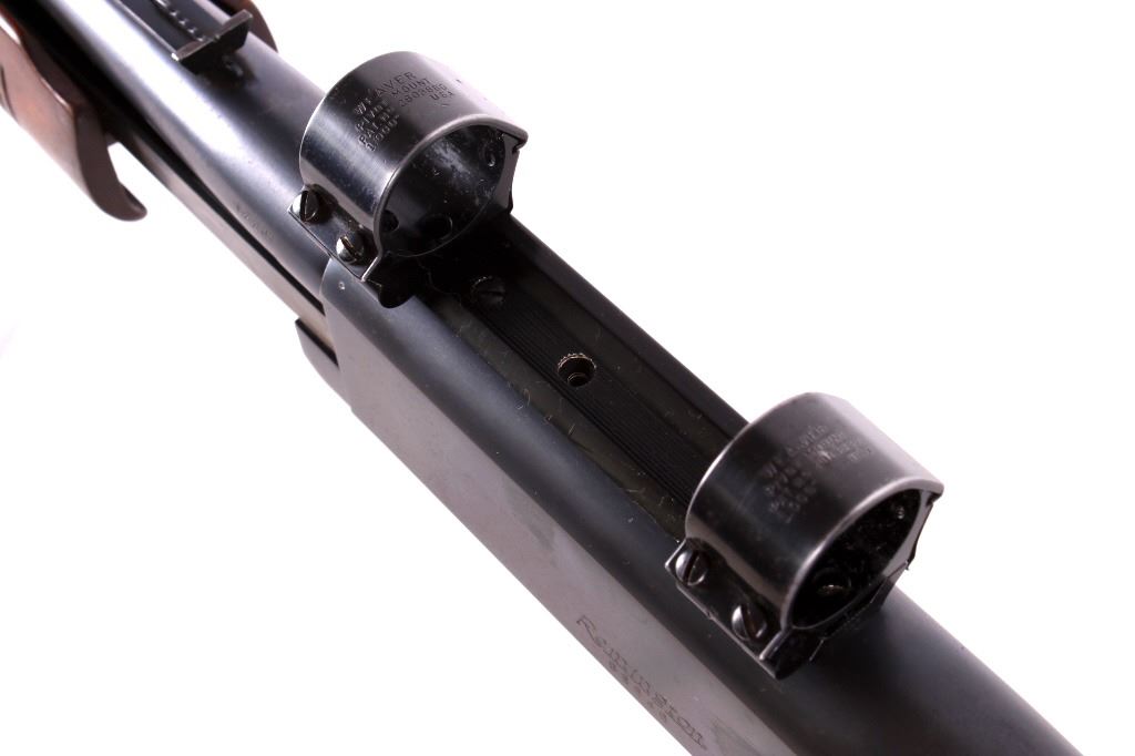 For your consideration is a rare caliber early second year production Remington Model 760 Gamemaster pump action rifle in limited production .35 Remington caliber. This model was introduced in 1952 and has serial number 68846 with a manufacture code of “B ZZ” indicating a manufacture date of January 1953. The Model 760 is known as perhaps the finest pump action center fire rifle ever manufactured. It was produced in the largest numbers in calibers .270 Winchester and .30-06. In later years of production, it was produced in .243 Winchester, .308 Winchester and other popular cartridges. The .35 Remington chambering was offered in very limited quantities in only the first several years of manufacture. Known for being a very powerful and effective “brush” cartridge, the .35 Remington caliber is still popular today in specialized custom single shot handguns and in the iconic Marlin lever action rifles. This earliest of production rifles shows fine blue overall with only normal light wear and scuffing yet retaining excellent markings on the barrel and receiver. It also has the desirable early style forend or “pump” which is in excellent condition as is the pistol grip stock. The action is tight, the bore bright and minty, and the flat top buckhorn rear sight with elevator bar is intact. The front sight is a Lyman marked red bead fitted in the original ramp. The detachable box magazine is the original and is stamped “.35 REM.” Additionally, this fine rifle is fitted with period Weaver scope rings and base as well as correct sling swivel studs. This is a seldom seen extremely early variation of the famed Gamemaster Model 760 Remington. This firearm qualifies as a Curio & Relic, and requires FFL Transfer or NICS Background Check.