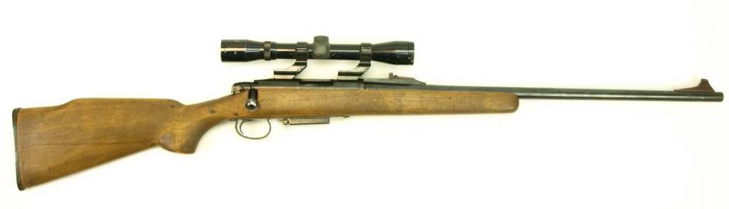 bolt action rifle with mounted Tasco scope. Remains in fair condition with good action and bore. FFL required.