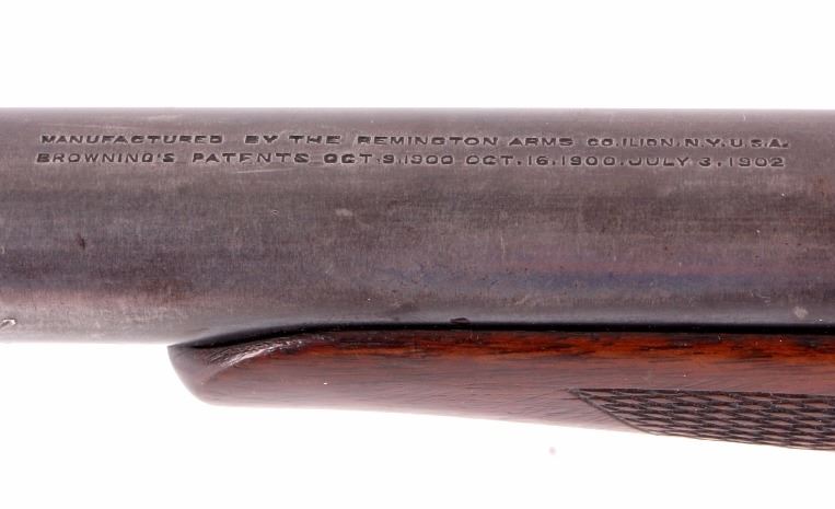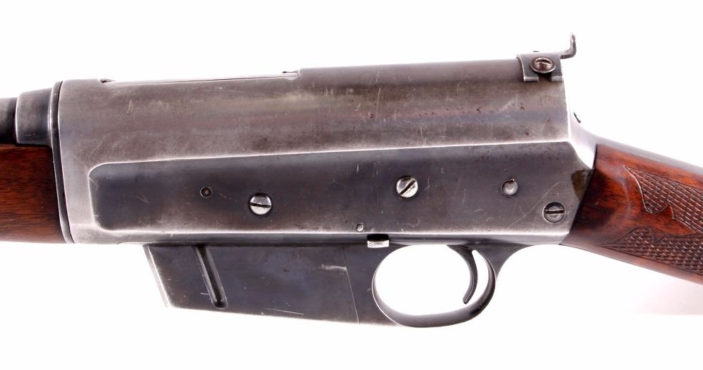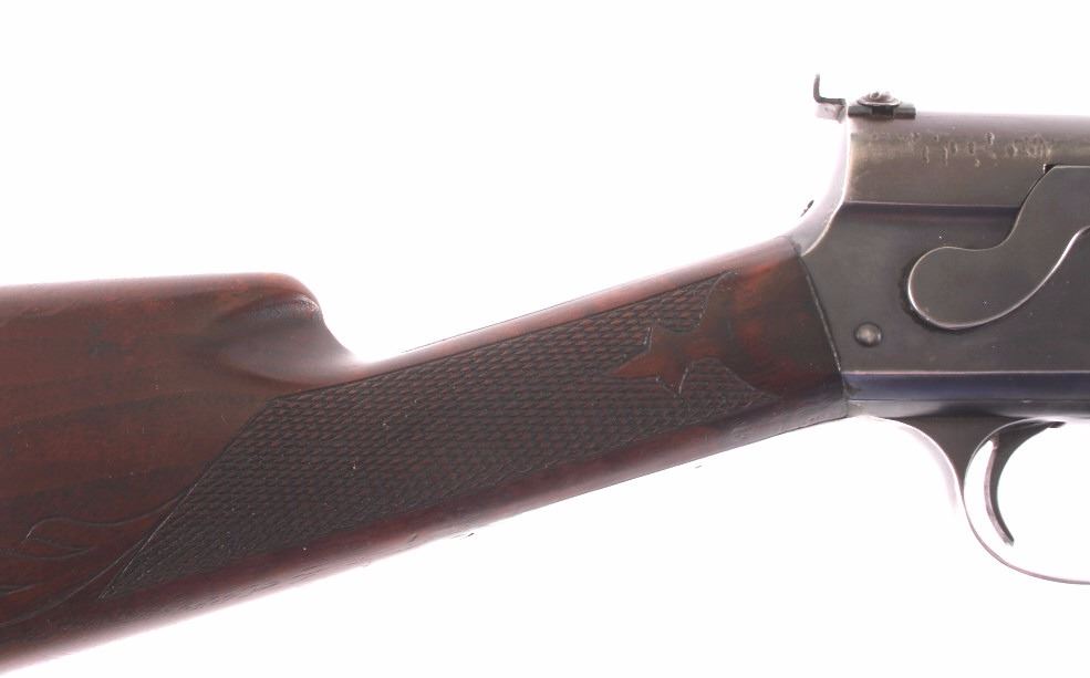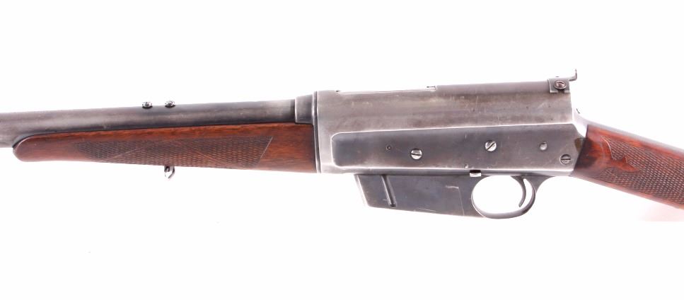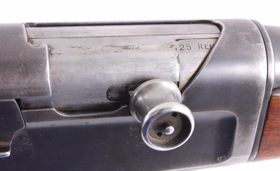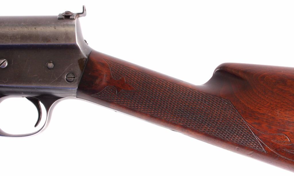 This is a Remington Model 8 .25 semi-automatic rifle chambered in the .25 Remington caliber and manufactured in 1911. The rifle features a blued barrel and receiver with checkered solid walnut hardwood stocks. The rifle has open sporting sights with a rear peep sight. The Remington Model 8 rifle is in good overall condition. The rifle measures 41.25" long with a 21.75" barrel. Serial number is 23600 and the rifle was manufactured in 1911. This firearm requires a Curio & Relic FFL, FFL or NICS background check for transfer.