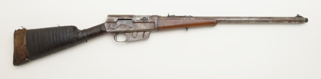 Remington Model 8, .35 Remington caliber semiautomatic rifle in poor condition sold as parts only, serial number 27450. The breech of the barrel shows brazing and repair and is in our opinion unsafe to shoot. Also the action ismissing some small parts. The butt stock is broken and horribly wrapped and repaired with tape. The bore is surprisingly good. Should be only purchased by qualified gunsmith only. Est.: $50-$100