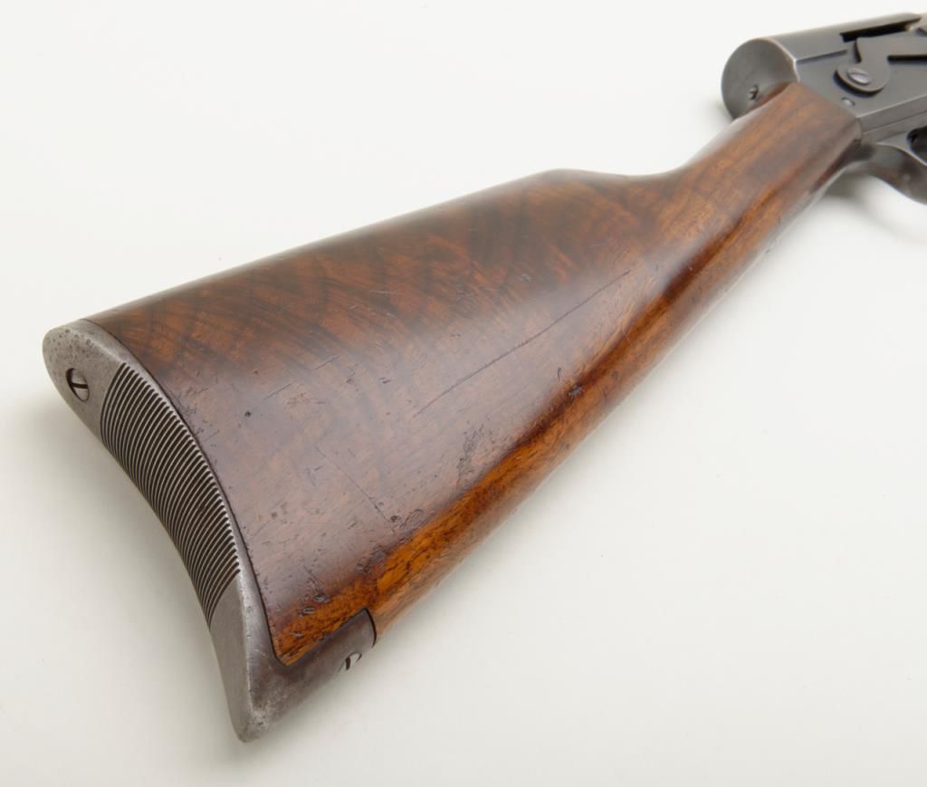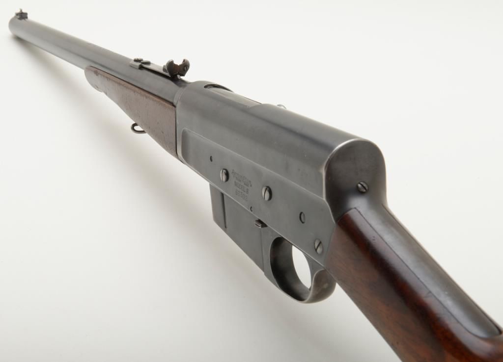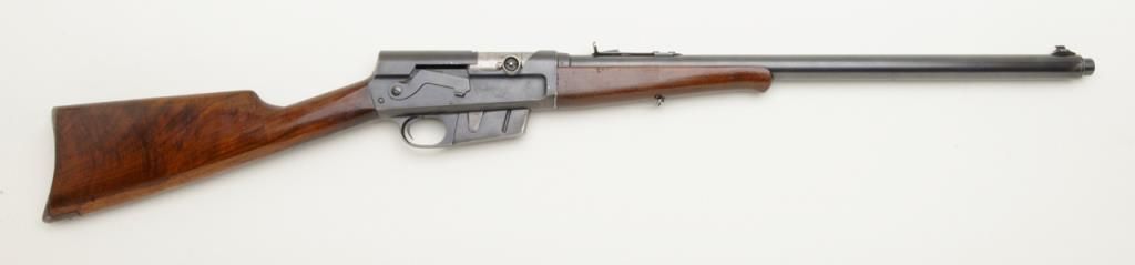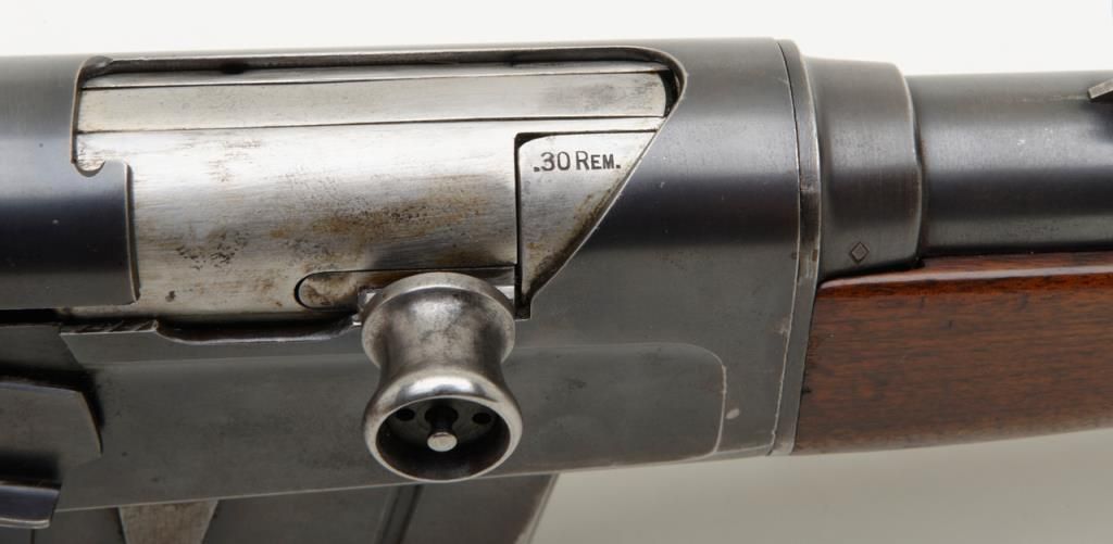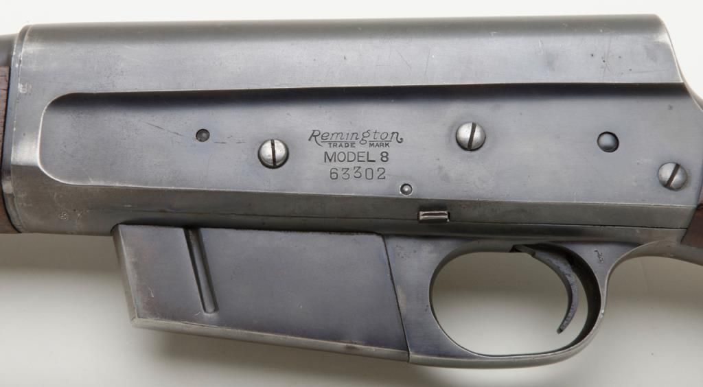 Remington Model 8 semiautomatic rifle in .30 Remington caliber remaining in very good plus original condition, serial number 63302. The barrel and frame show 80% to 90% original blue evenly thinning and toning with some losses at the high points and edges and some slight scratches. The stocks show a slightly better than average grain with some figuring. The stock condition is also very good with some even loss of varnish, minor scratches and just normal aging. The markings are sharp, the action is good and the bore is near excellent. Est.: $500-$1,000
