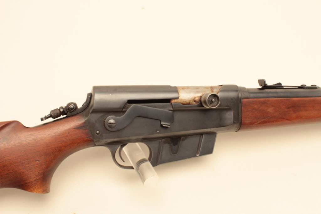 #20289. The rifle is in very good overall condition with a 22” barrel with a ramped blade front and standard rear sight. The barrel and receiver retain the nearly all of their blued finish with light handling marks noted. The smooth wood stocks are in very good condition showing only small mars and storage marks. The butt stock ends with a checkered steel Remington marked butt plate. A period receiver sight has been added during the period of use. The bore is good, the action is crisp and the markings are sharp. Est.: $300-$600. (C+R).