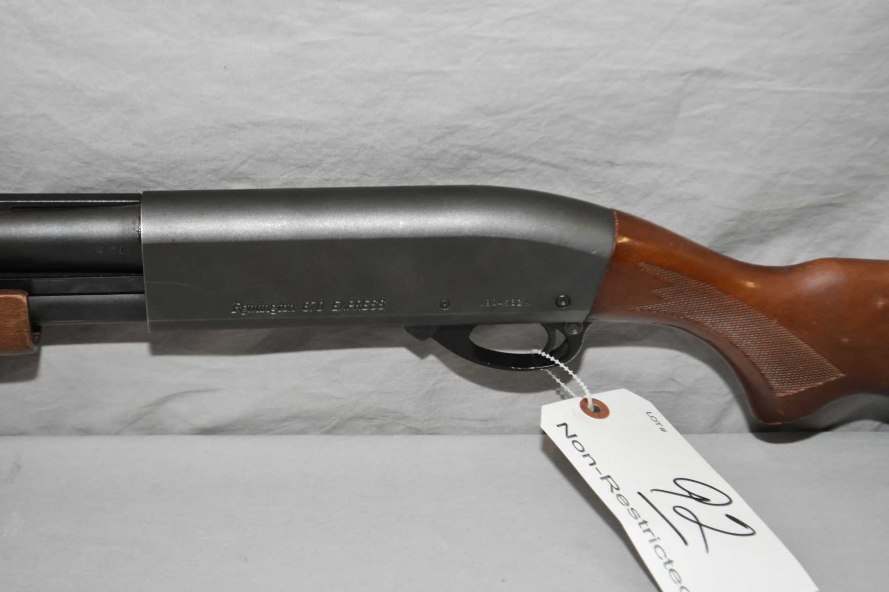 Remington Model 870 Express .12 Ga 3" Magnum Pump Action Shotgun w/ 28" vent rib bbl with screw in choke [ flat blued finish starting to fade, with some slight surface rust to left side of barrel, pressed checkered stock and forend with Remington recoil pad, some marks and scratches to wood and metal ] Ser # W904562M
