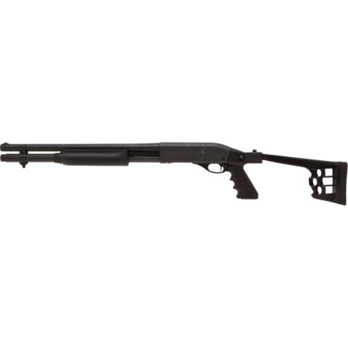 Remington Model 870 Express Magnum Riot Shotgun. Serial no. AB192942N, 12 gauge, 3-inch chamber, 18 1/2-inch barrel with nickel bead front sight. Black graphite finish. Pistol-grip with folding buttstock with storage slots for three shells. Ribbed fore-end. Rubber recoil pad. Sling eyes. Condition: Excellent with light handling and storage wear.NRA FIREARMS FOR FREEDOM PROGRAM
