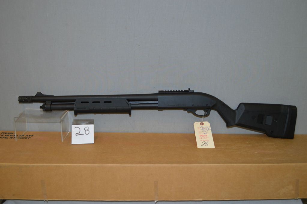 Remington Model 870 Express Tactical .12 Ga 3 " Pump Action Shotgun w/ 18 1/2" RS bbl [ appears as new, unfired in original box w/booklet & access, etc. blue finish, barrel sights w/ rail, w/ Cerrakote Magpull stock & forend,] Ser # RS 097707F