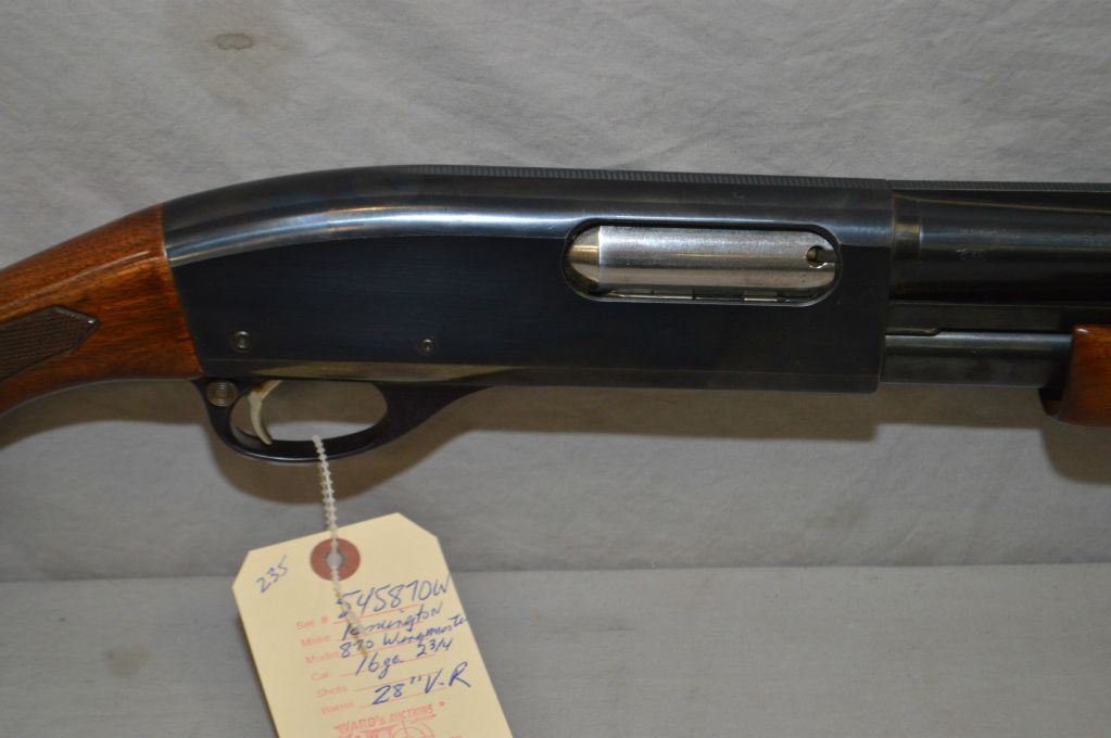 Remington Model 870 Wingmaster .16 Ga 2 3/4" Pump Action Shotgun w/ 28 "vent rib bbl [ appears v-good, few slight marks, blued finish, checkered pistol grip stock & forend w/Pachmayr recoil pad ] Ser # 545870W