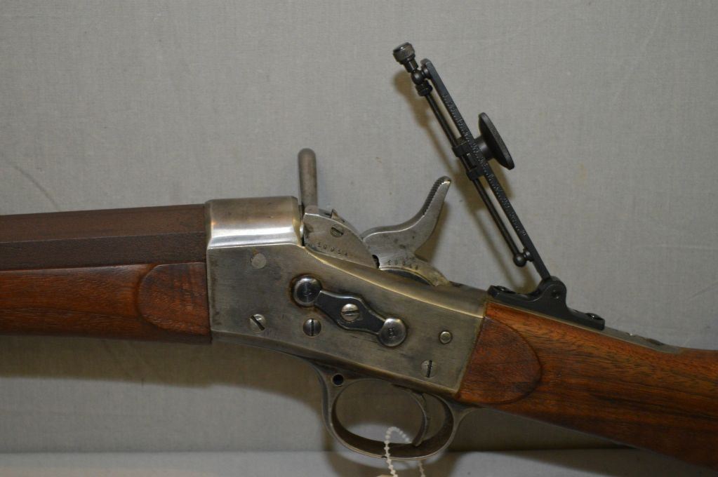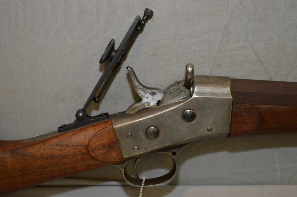 Remington Model No 1 Rolling Block .40 cal ? Single Shot Target Rifle w/ 30" octagon bbl [ brown finish, hooded target front sight, tang Vernier back sight, traces of case color on receiver, nice wood w/ raised cheek piece, metal butt plate ] Ser # 10014 Antique NO PAL Req