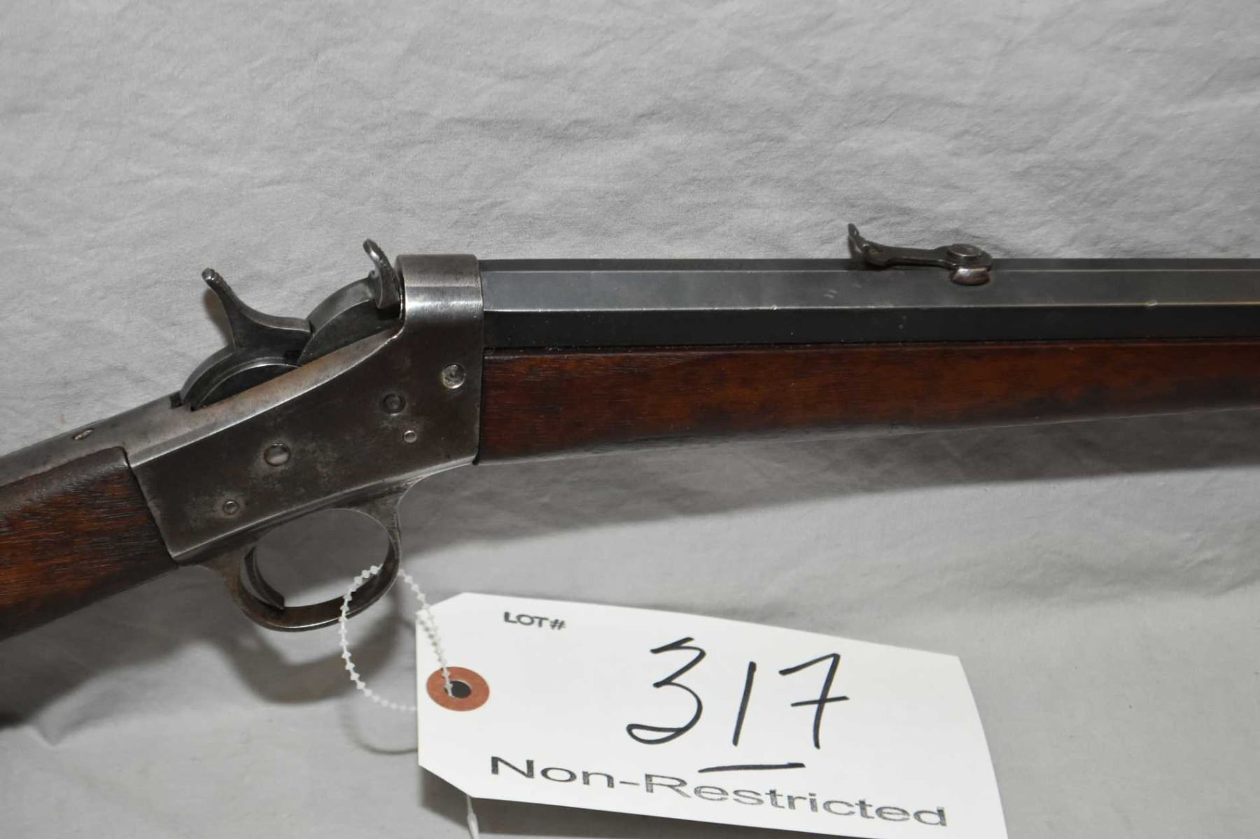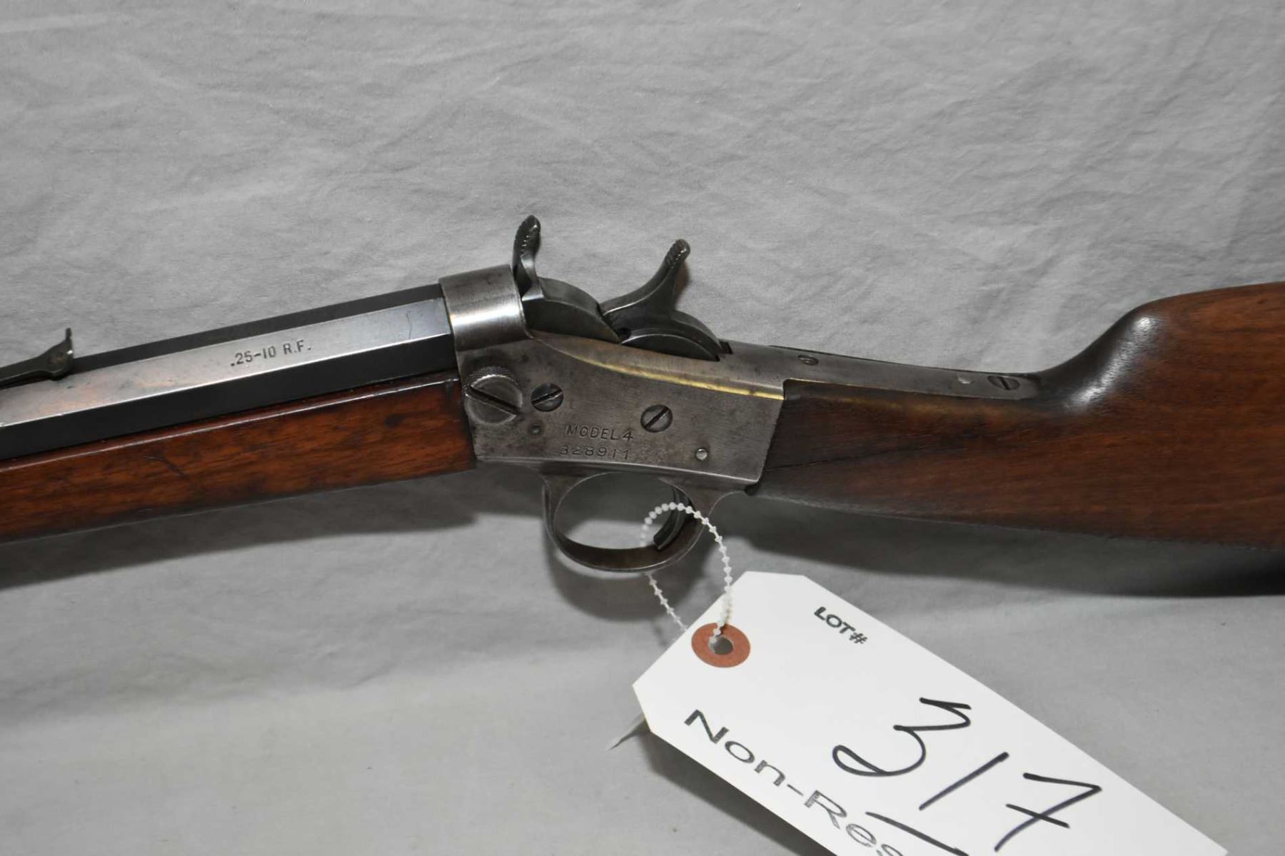 Remington Model No. 4 Rolling Block .25 - 10 R.F. Cal Rolling Block Rifle w/ 22 1/2" octagon bbl [ blued finish, starting to fade, some marks, traces of flaking case colored turned silver, good forewood few marks, butt stock cracked at wrist, some marks, Remington UMC metal butt plate ] Ser # 328911