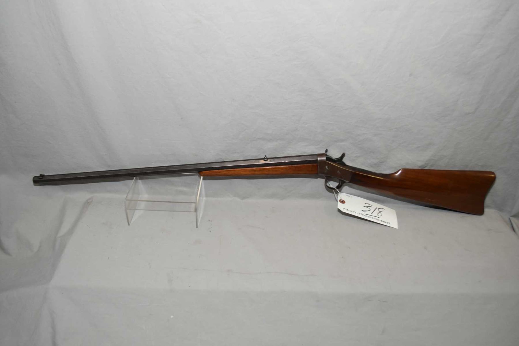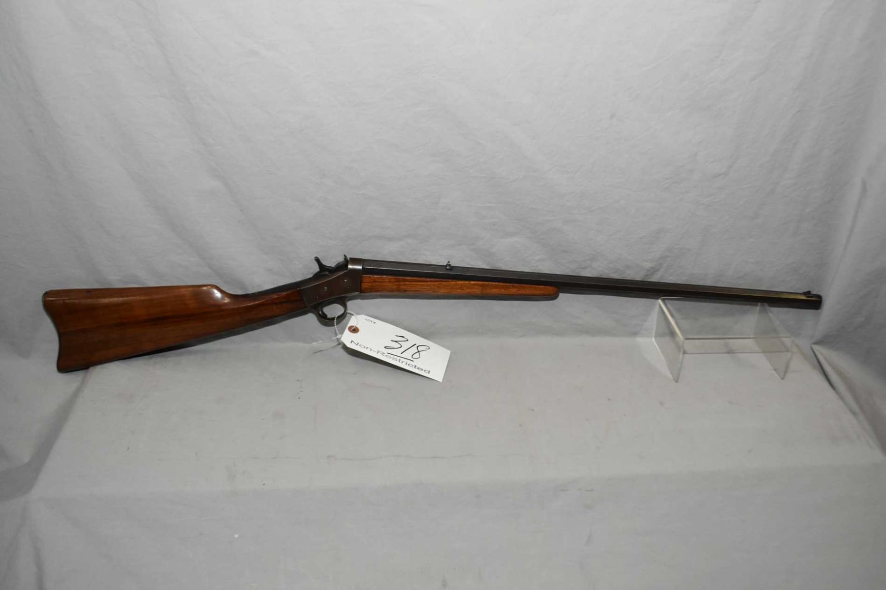 Remington Model No. 4 Rolling Block .32 Rimfire Cal Rolling Block Rifle w/ 24" octagon bbl [ blued finish turning brown, barrel sights, some marks, faint traces of case color around and in protected areas, good varnished wood w/ few marks, metal butt plate ] Ser # 124780